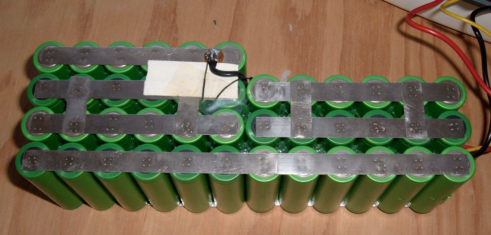 This is the other common arrangement of cells BionX uses in the LiMn 36v packs, and it shows up in the newer packs (all the 37V Canbus packs I’ve seen are of this style).