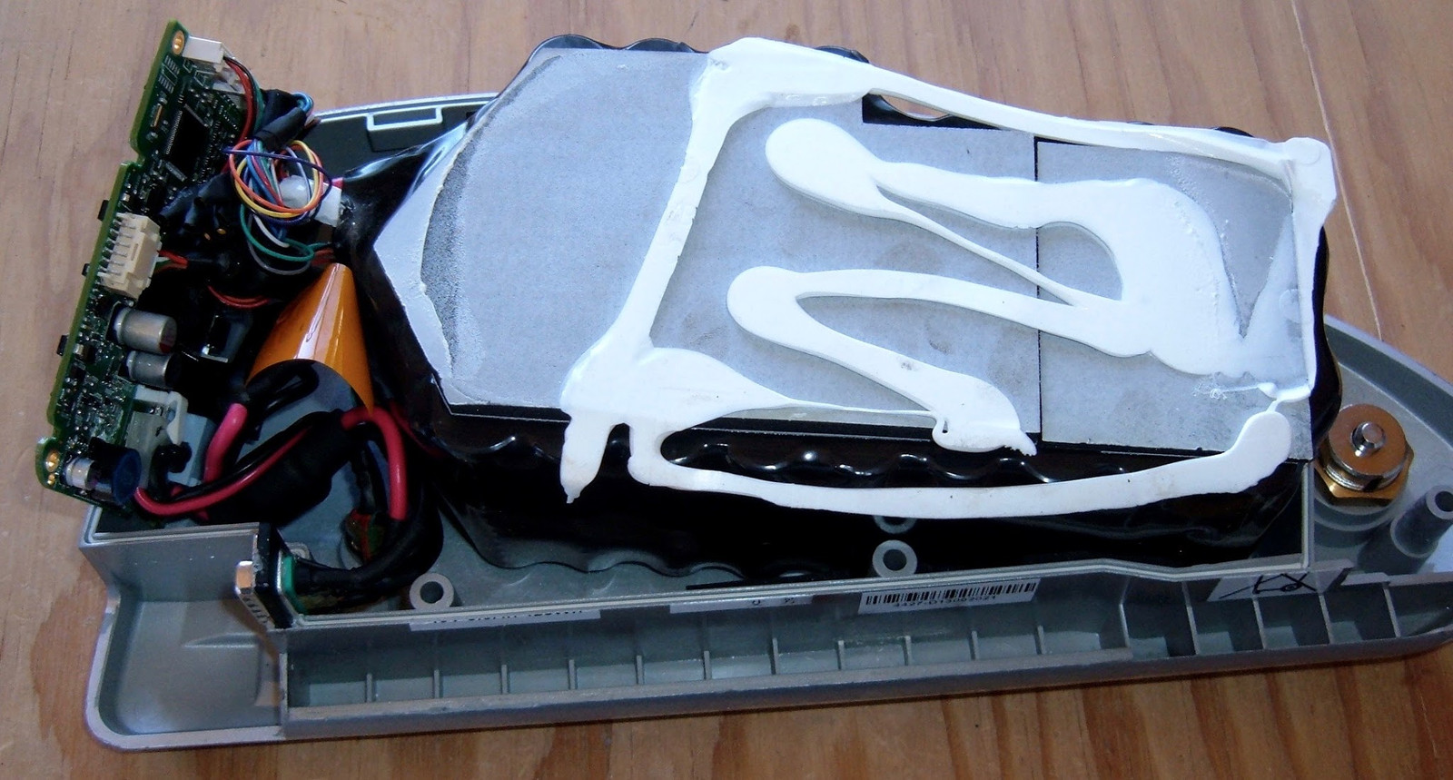 With the pack unlocked and the bolts out, things start come apart, then rapidly stop moving.  I’ve played with enough BionX packs of various ages that I’ve got a good idea why - adhesive.  The newer the pack, the more goop holds it together.  However, with the exception of the Trek Valencia Ride+ pack and the Trek Transport+ pack (which are both held together with some nightmarishly sticky black foam), the adhesives are mostly silicone based or similar, and do a great job of keeping the battery in place while not being too awful to open.