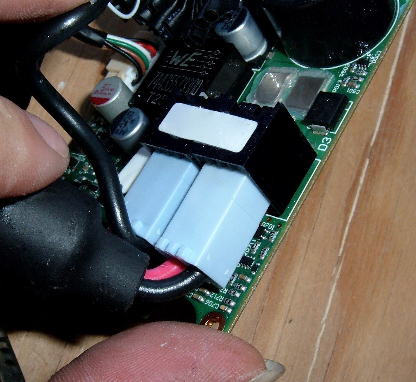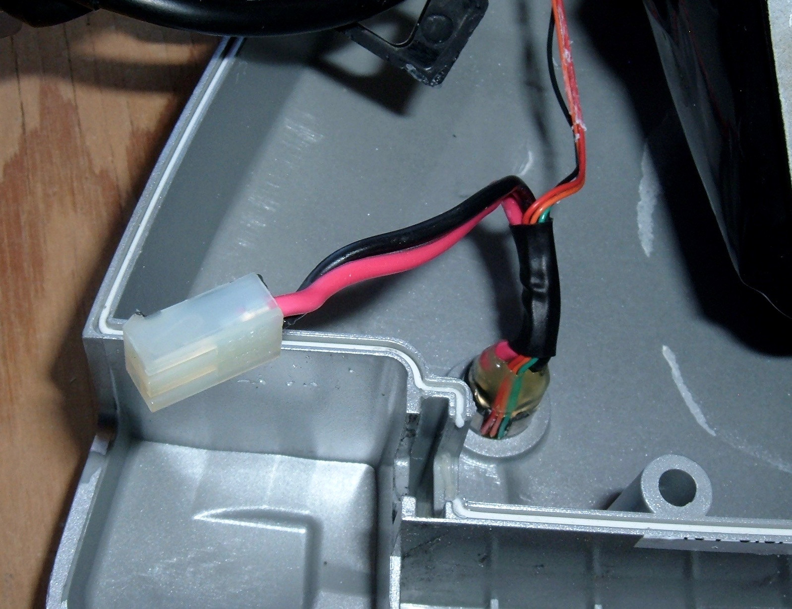 And… oh, my!  Removable connectors!  The older packs are all soldered together.  That’s not really a problem, but you can’t easily pull stuff apart without a soldering iron.  Look!  I’ve removed the charge port power plug without a soldering iron!