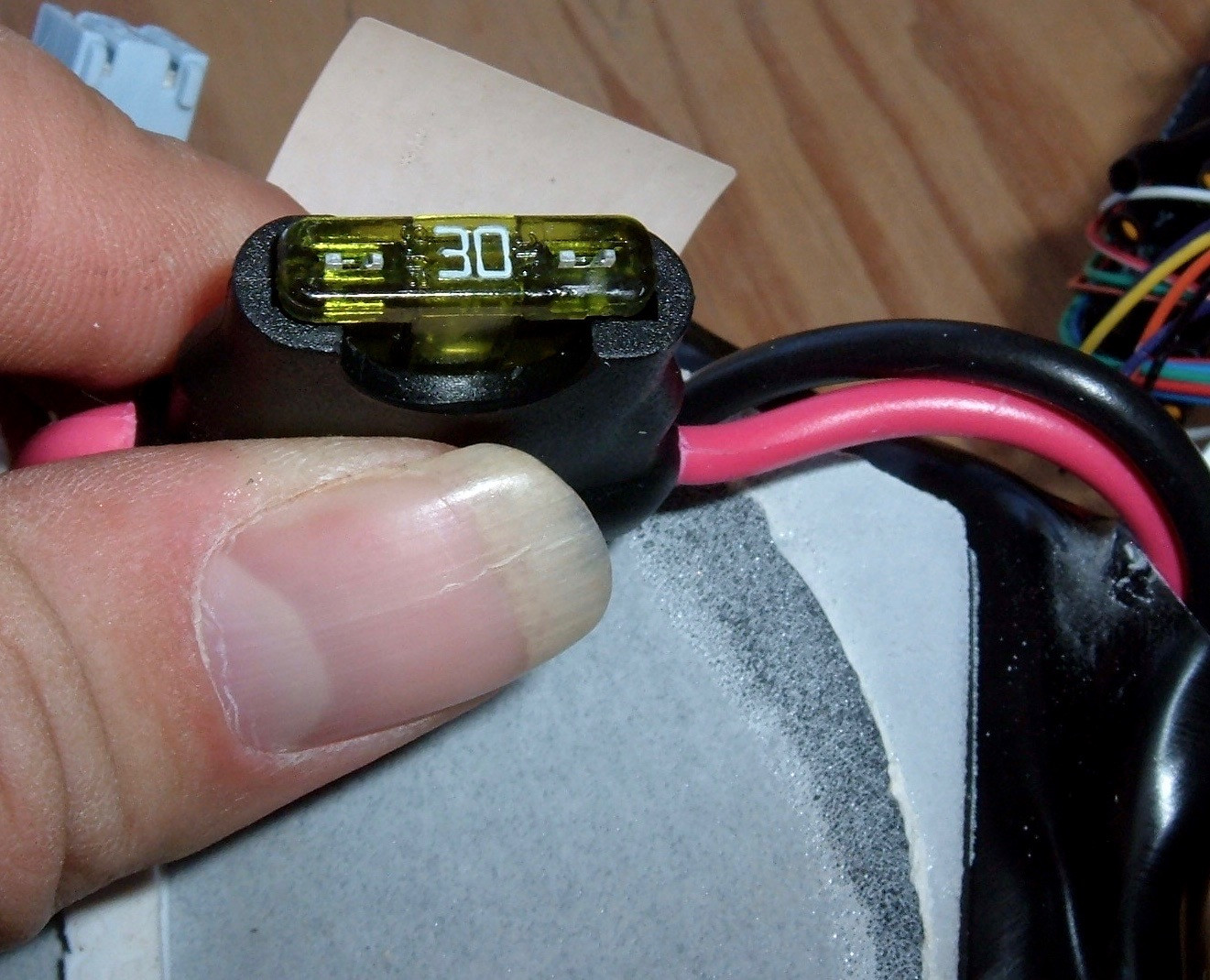 The first thing I noticed about this pack is that the fuse is in the battery wiring - not on the PCB.  This is a really good thing.  Previously, the pack could dump more or less unlimited energy into the board before it hit the fuse (I’ve seen pictures of the results of this, and it’s not pretty).  In the wiring is a better place for a fuse.  A 30A fuse on a 48V pack works out to around 1500W, so there’s plenty of spare power, and the fuse seems to be suitably sized for the wiring.