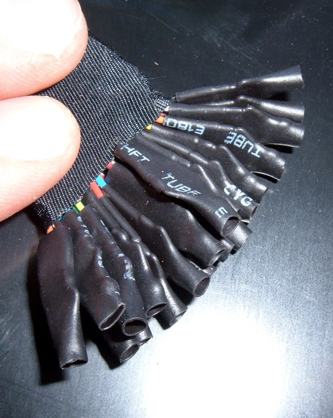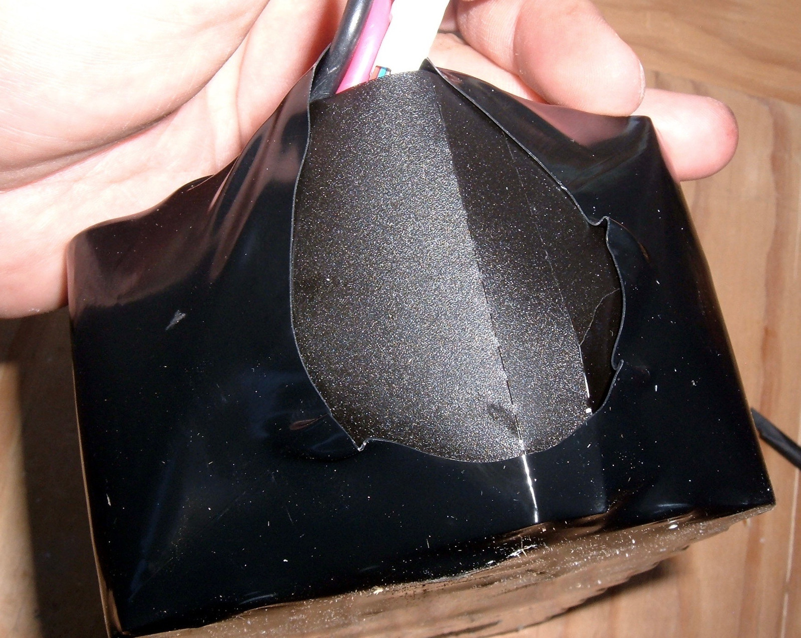The foam end cap comes off to reveal more of the wires and more tape.