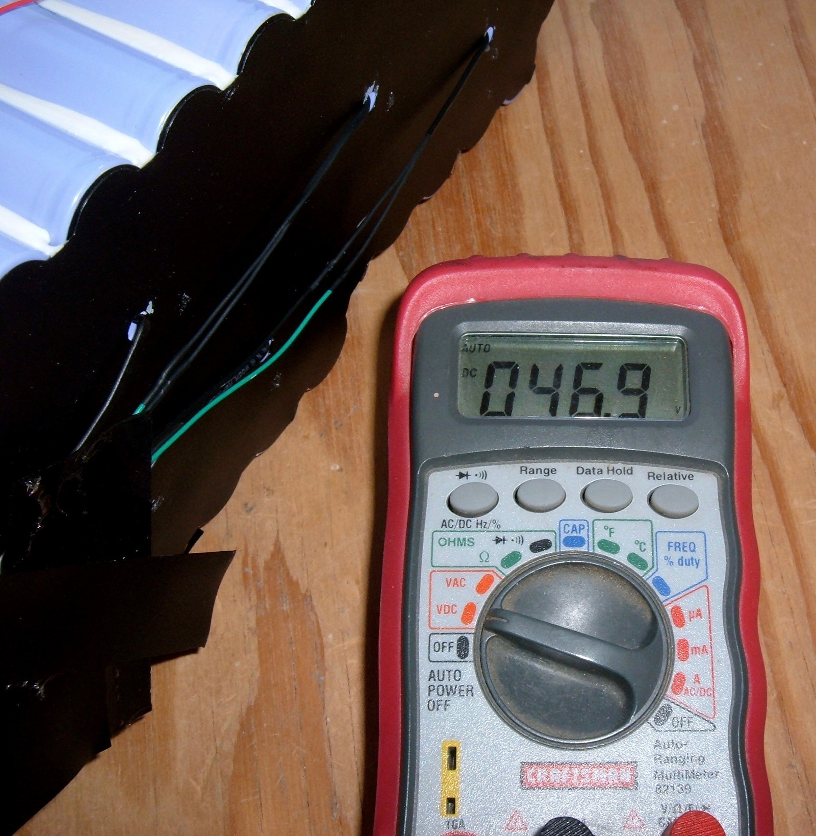 For those curious, the pack voltage (in aggregate) is 46.9V as I received it after sitting for a while.  That’s about 3.61V/cell if everything is balanced.  Sometimes things are, sometimes you find a horror show at -0.25V/cell.  I don’t see any obvious corrosion, though…