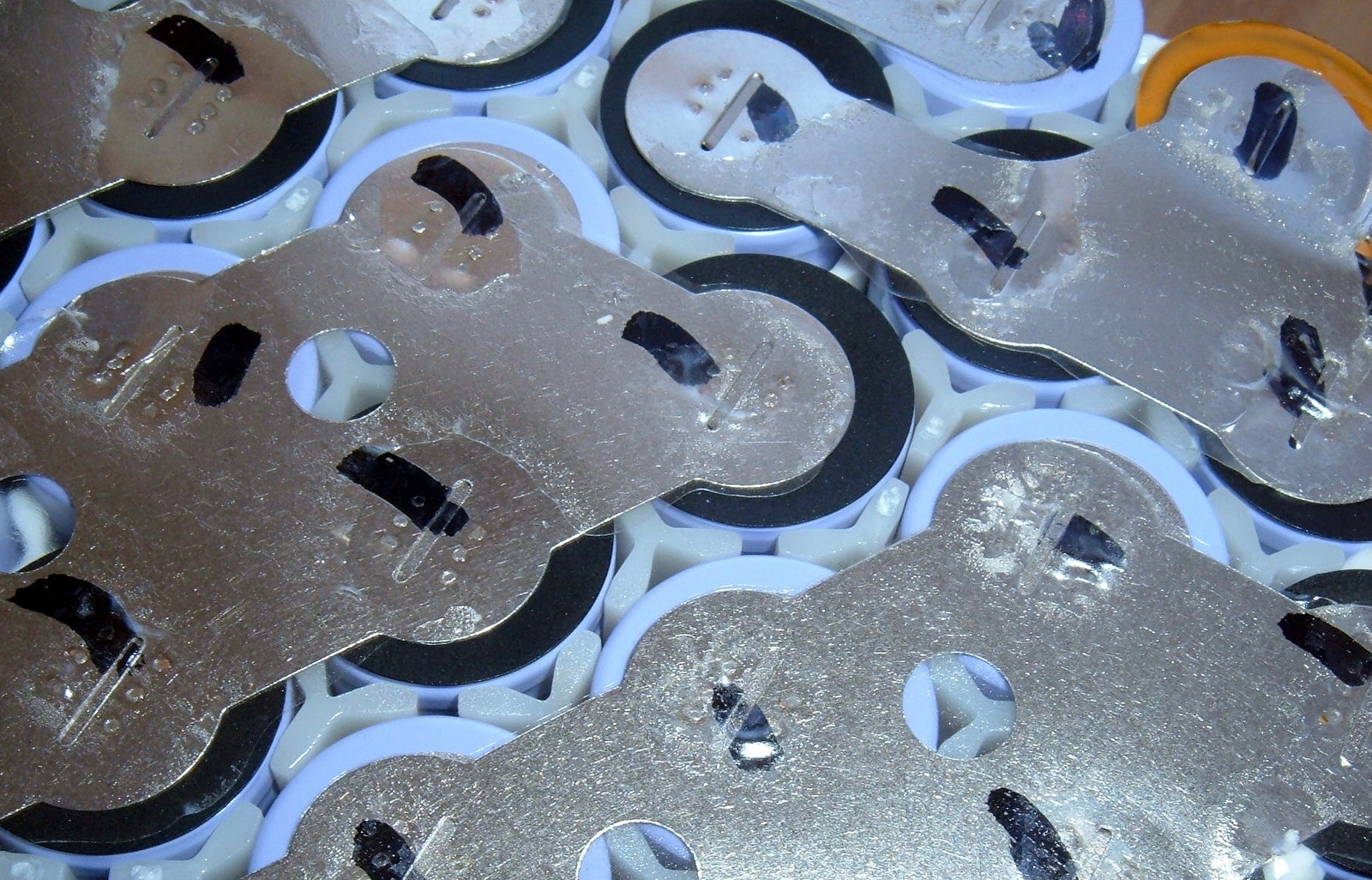 There are at least 7 different shapes of nickel strip I can count between the top and bottom.  Someone likes their custom cut nickel strip.