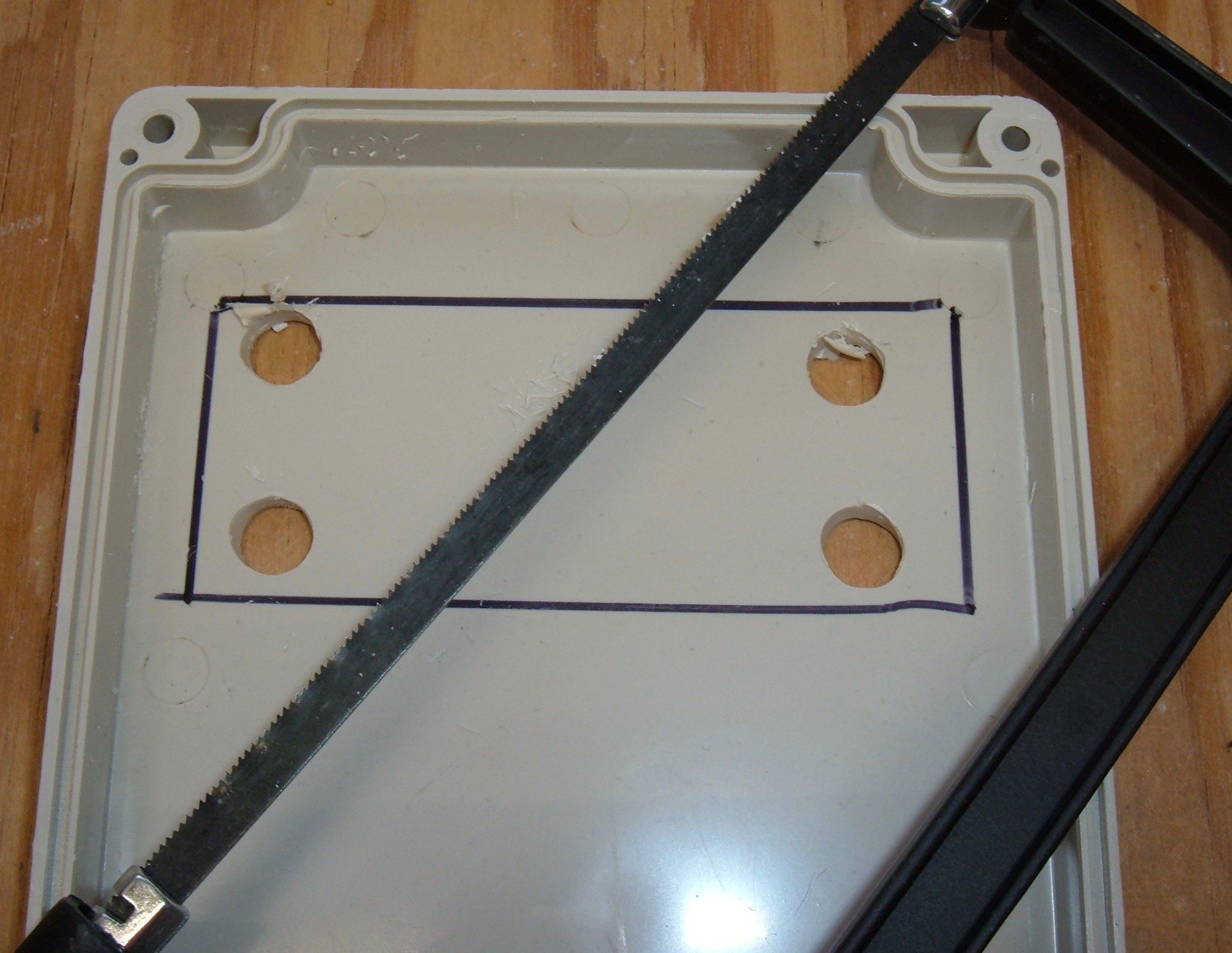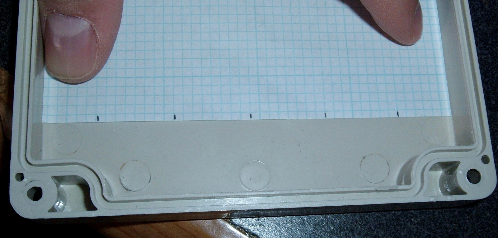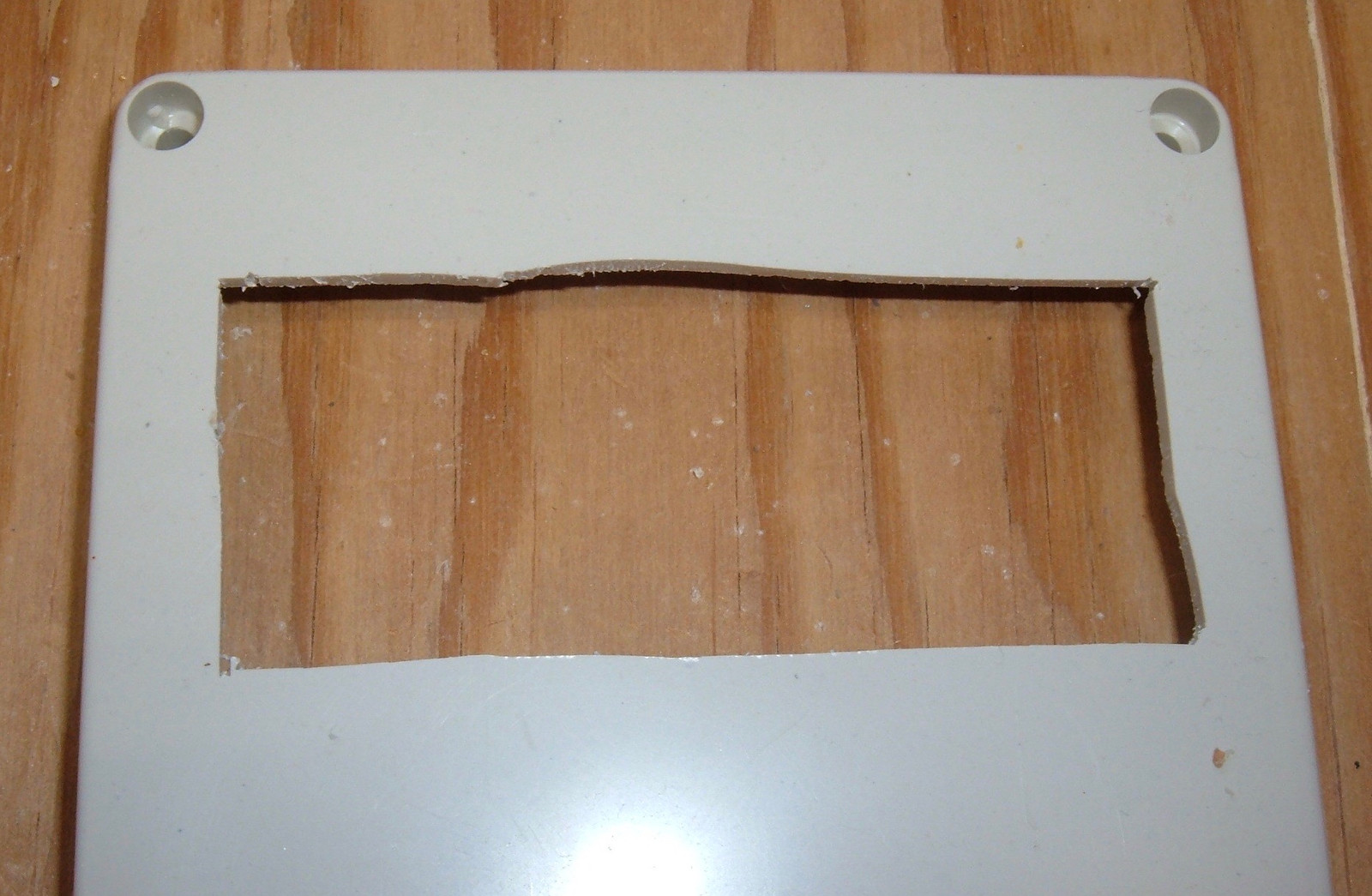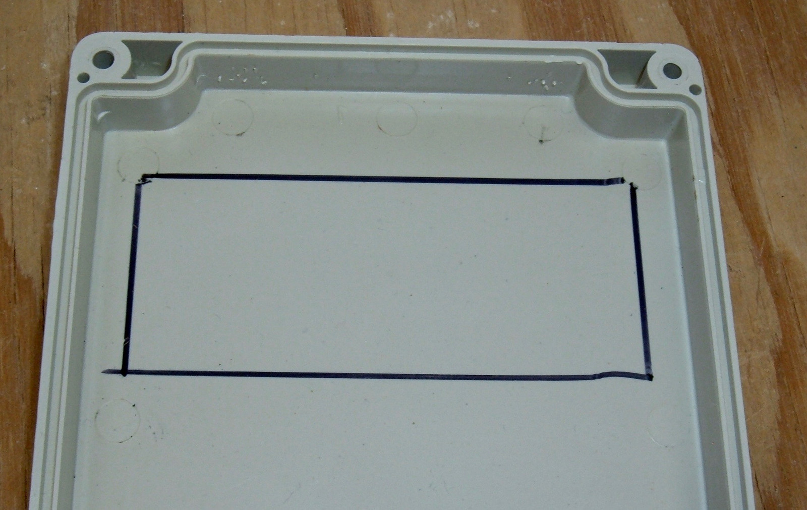 Fitting the LCD into the box lid involved seeing how far up I could place the panel while still clearing the lid with backplane board (the board being larger than the actual LCD), then marking the opening for it.