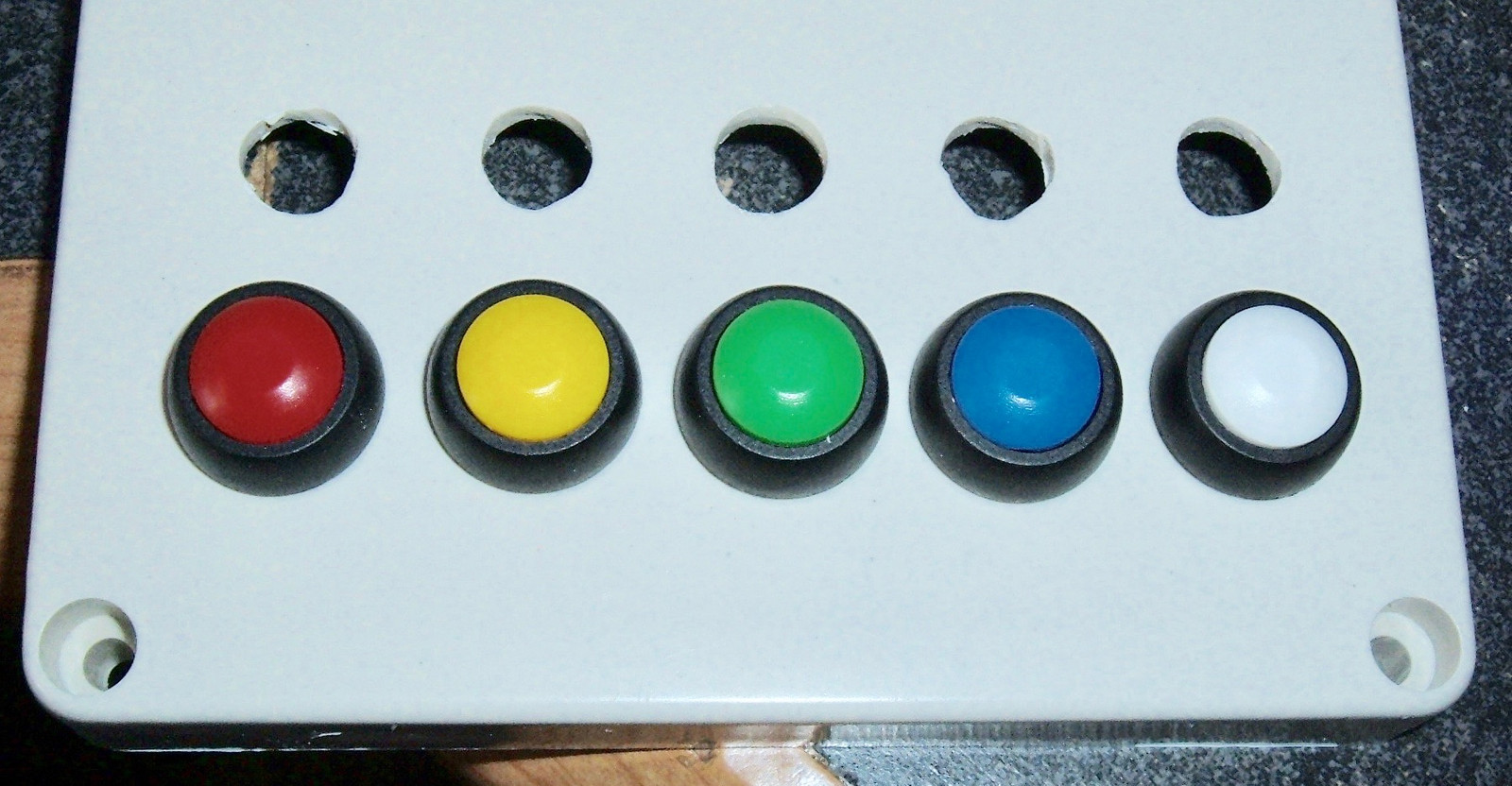 The top buttons are an old style arcade pushbutton - rather clicky, all identical.