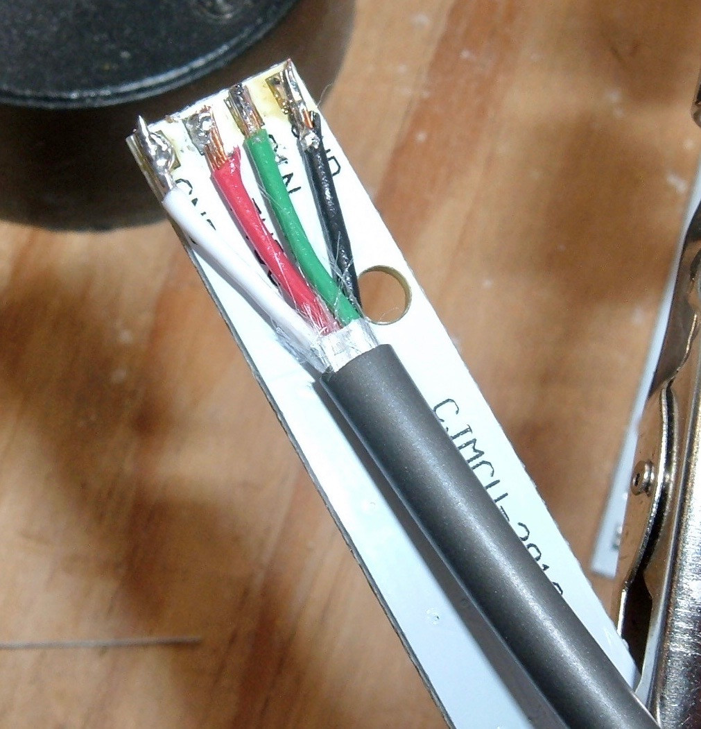 My first attempt to wire these up involved stranded four conductor wire. This would have been a good option to stick with.