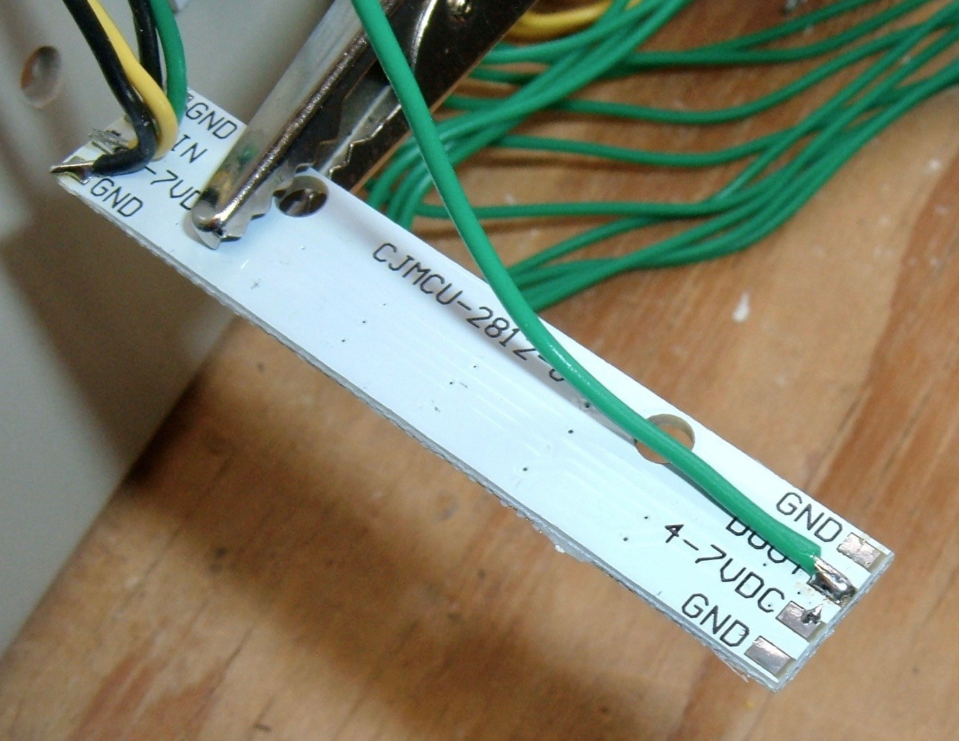 However, even with the solid core wire, the strips work. Top strip, sitting in place for a test.