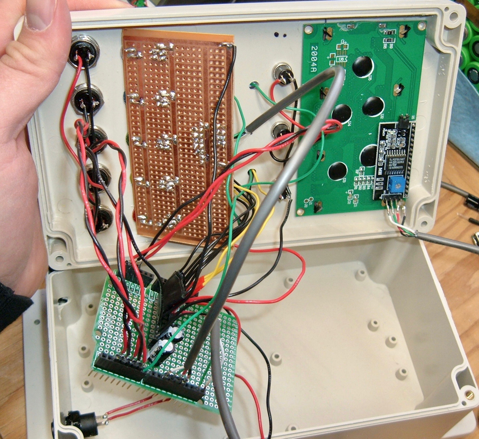 It sits almost flat, but not entirely (due to the pins sticking slightly out in the top right corner under the I2C backpack). However, you can see that the LCD board takes a good bit of the space in the lid. The huge open area around the LCD on the front is due to this interface board - I simply can’t put any hardware right around it.