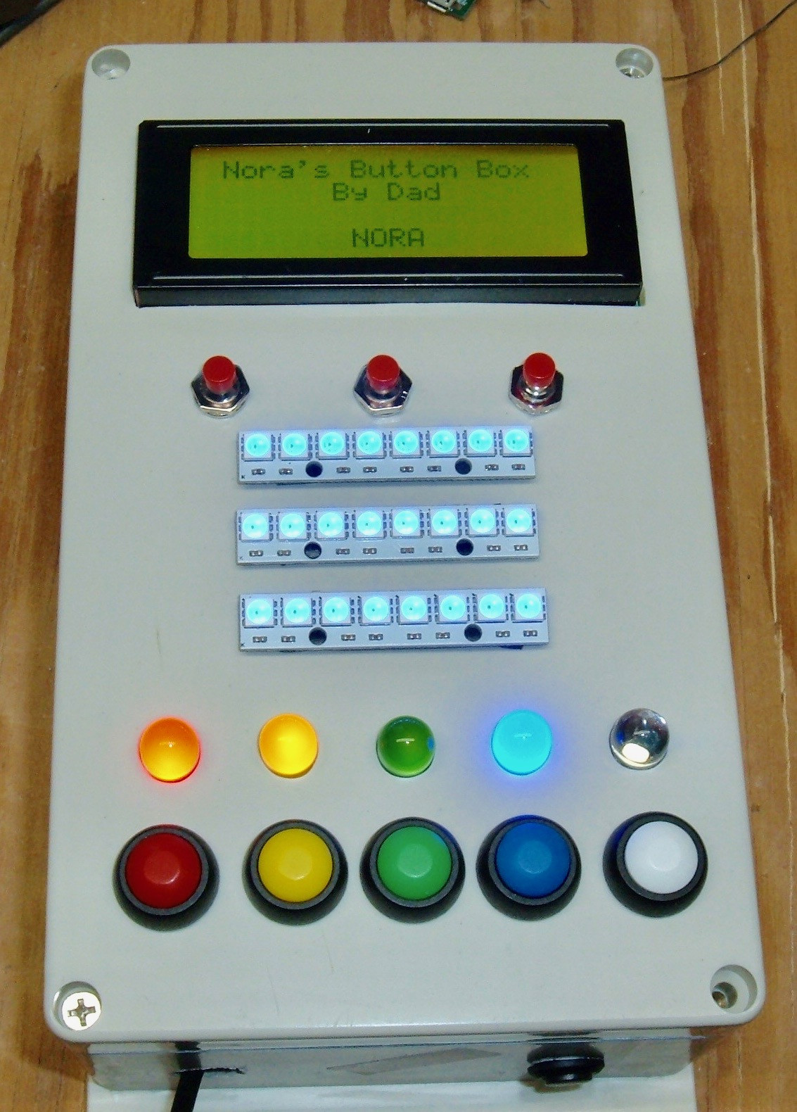 My daughter (23 months old) likes pressing buttons and anything involving lights (“yight!”). I had some time off this winter - and some parts to build something I call a “Button Box.” And what, realistically, is both a toy that can grow with her, and a subtle way to teach low level programming when she’s older (if she’s at all interested). Because nobody is learning C in schools anymore, and C still matters.