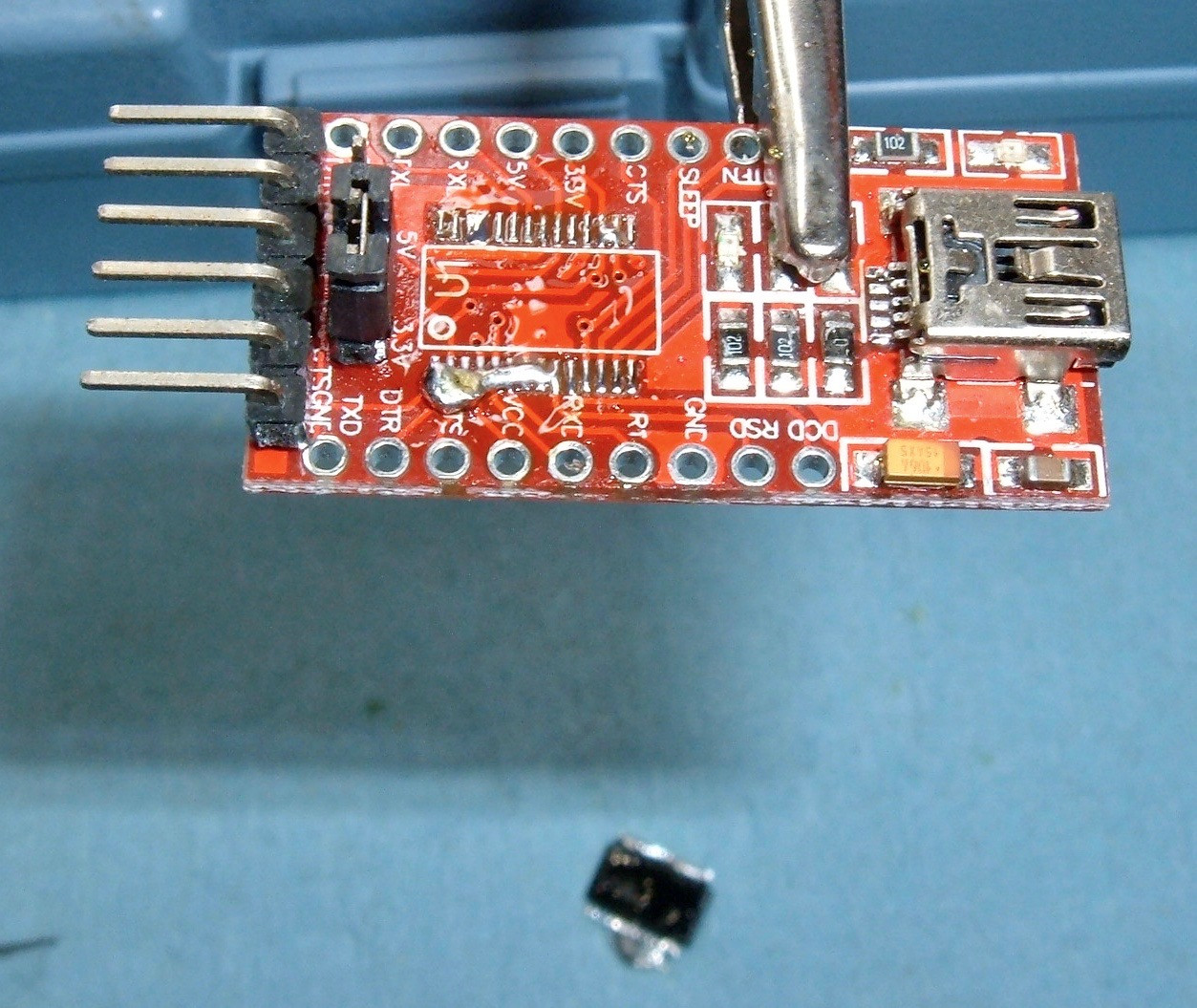I have a bunch of these adapters laying around (purchased before I realized just how common the fake chips were), and while they work just fine at 115200 baud, they don’t work reliably at 3M baud. I spent a while troubleshooting some connections - things just weren’t working right and an awful lot of garbage was coming across my link. I eventually discovered the problem with fakes, and set out to both fix my problem and learn some surface mount rework skills.
