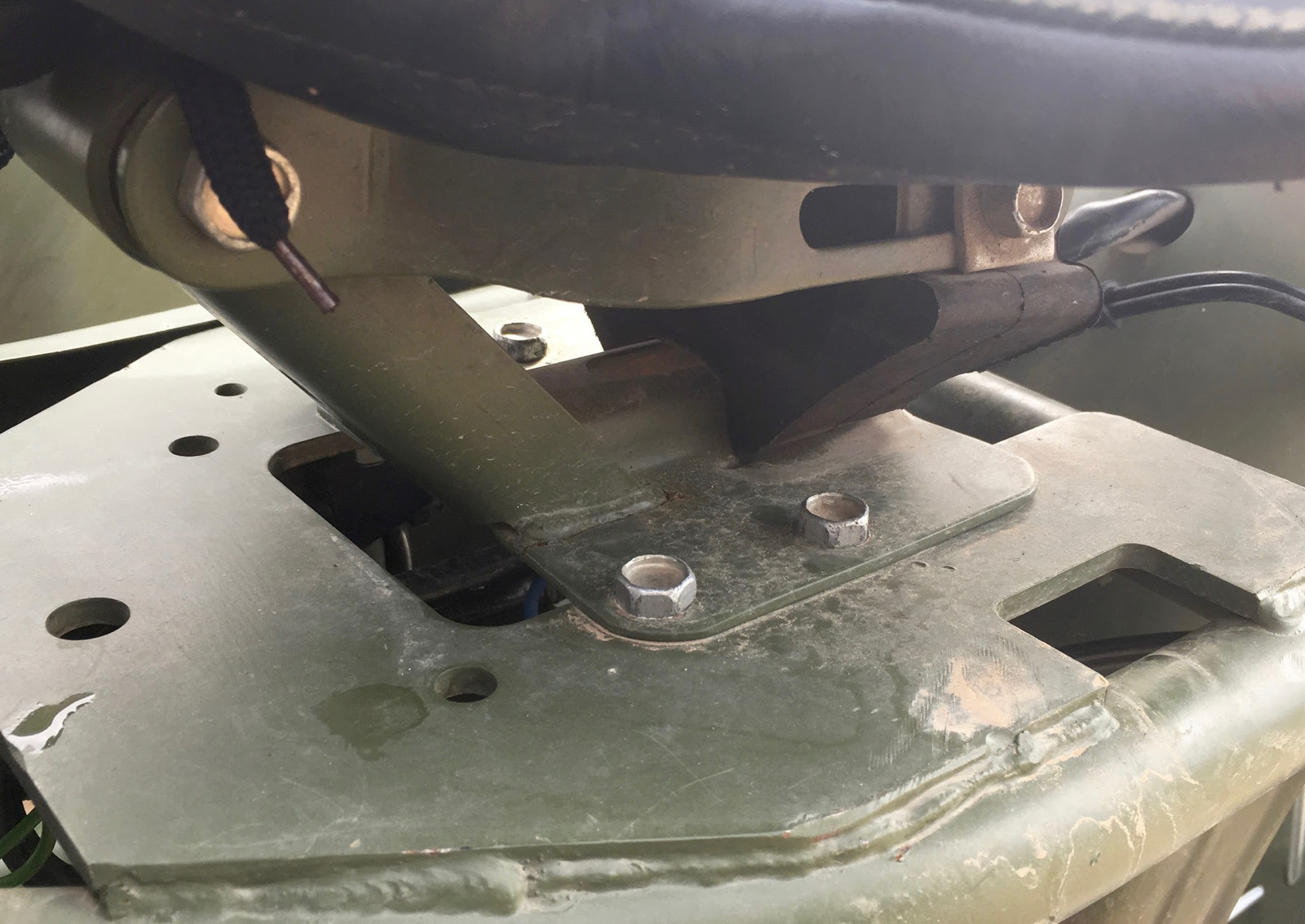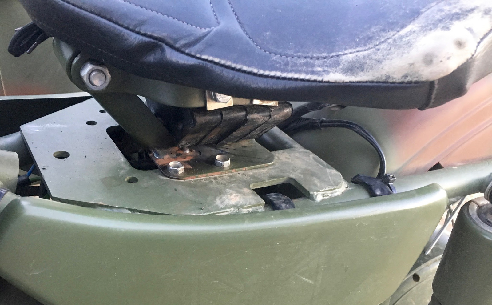 This is the underside of the seat - it bolts across a bushing at the front, and bolts to the rubber in the rear. If the rubber bushing looks like it’s sagging, that’s because it is! There’s no weight on the seat in this photo - you can imagine what it was doing with me on it.