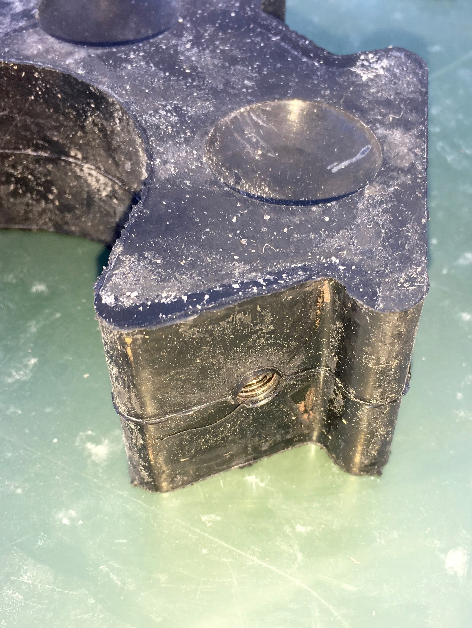 On both sides and the bottom, nuts have been molded into the rubber for the mounting bolts.