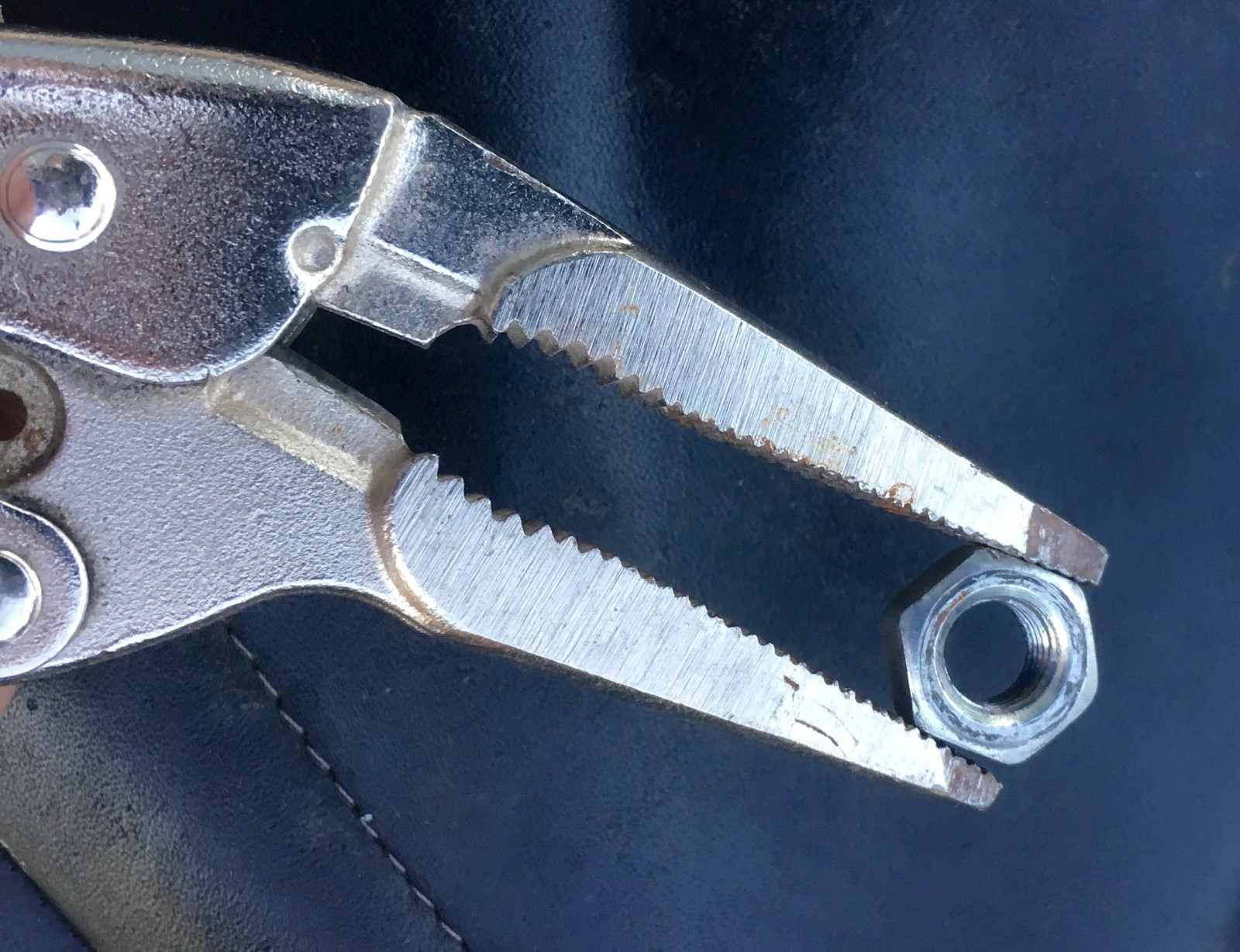 I found that using a pair of vice grips on the nuts made installing the sidecar-side bolts much easier. I could have done it with my fingers, but this bit of tool use made things much quicker - and let me hold the nuts in place while I tightened everything up.