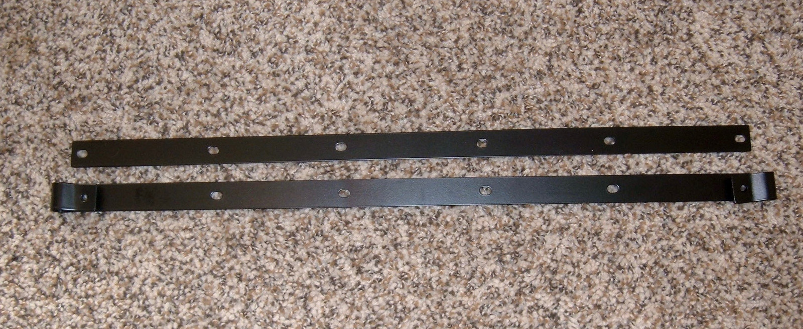 These two flat pieces (or possibly slightly bent pieces, depending on how they arrived) are used to hold the apron on the windshield and to secure the windshield in the frame (along with the grooves on the side). You’ll bend them to shape around the windshield with the bolts.