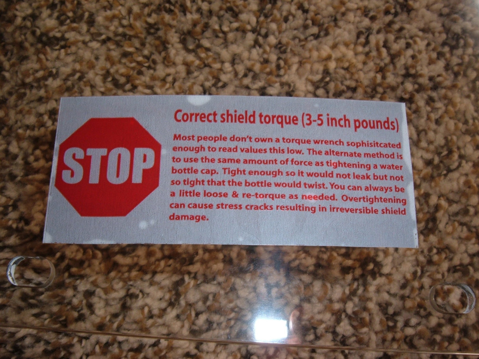 There’s a stern warning about nut torque on the windshield. It’s worth obeying! The windshield nuts are nylon lock nuts, so they aren’t going to come off while riding - you don’t need to clamp down that tightly, and it’s always easier to tighten things up a bit down the road than it is to replace a cracked windshield. Pay attention.