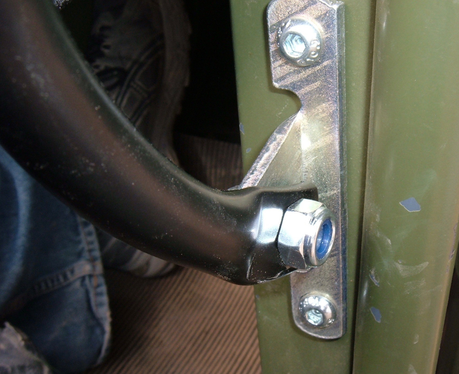 My solution to people using the grab bar to get in and out is to fold the windshield all the way forward and ask them to hold onto the sidecar body, not the grab rail. It hasn’t been a problem so far. I have no real desire to take the windshield off regularly (just fold it), so the bolts work just fine for me!