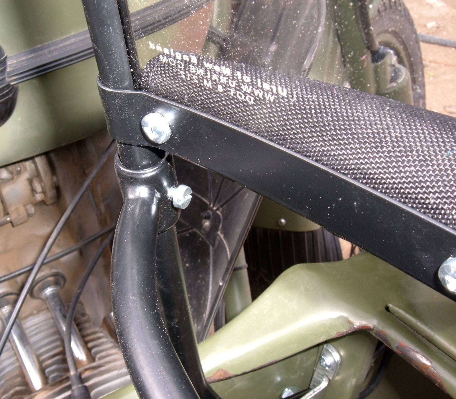 A few people argue that you should install the hand grip backwards (facing the front of the sidecar). This prevents people from using it as a grip, obviously. The major advantage of this is that people won’t be tempted to use it when getting in or out - this can pull on the apron and rip it free given enough abuse. Another advantage is that with the windshield down, there’s more cargo room. So, something to consider.