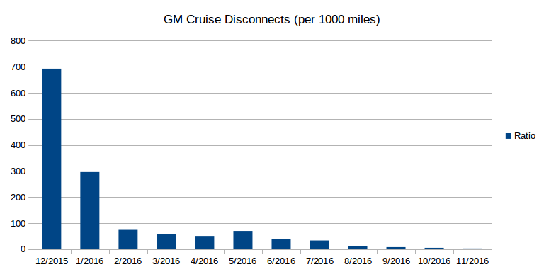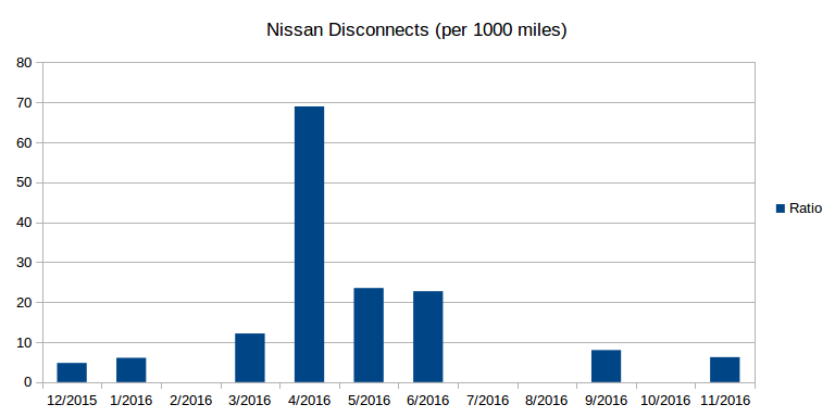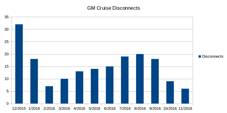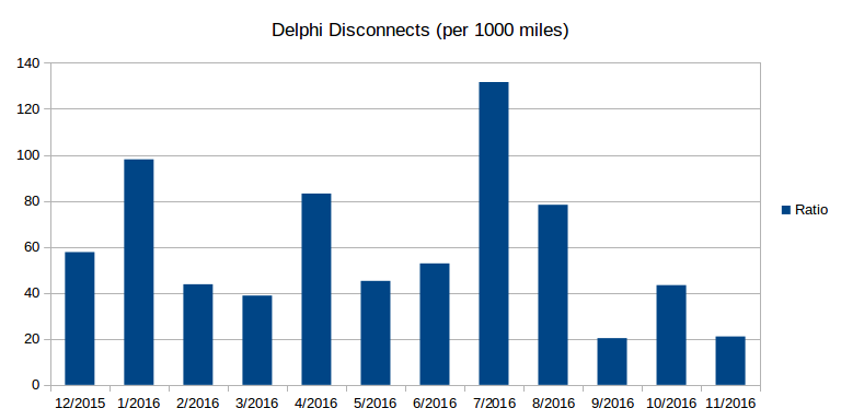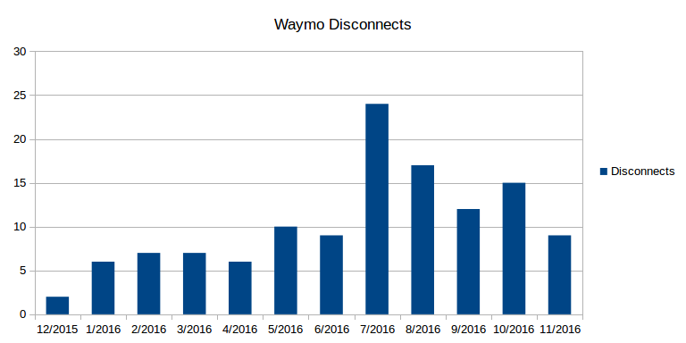 The first few months of testing (Feb, March, April) were awful. There’s no other way to put it. Over 4000 disconnects per mile - that means that they couldn’t go a quarter mile without a problem. The numbers got better in March and April, but they still couldn’t even make it a mile.