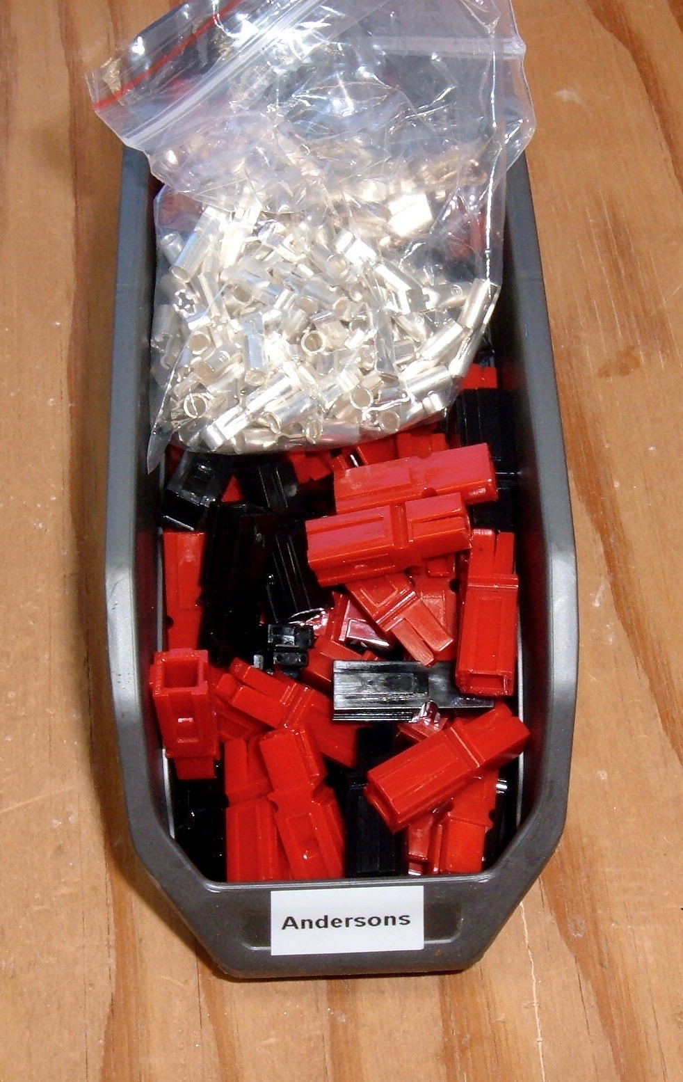 Anyway, an awful lot of high power soldering iron work later, some electrical tape, a few Anderson connectors, and a sense wire crammed in place, I have my parallel connectors! These will handle 30A for a while - they’re 10 gauge wire, and will be exposed, so they can radiate heat. ”How much current can this wire handle?” is largely a function of how efficiently it can radiate heat. Open air, outside, and “I would prefer it to keep the insulation from melting” means it can handle a lot of current.