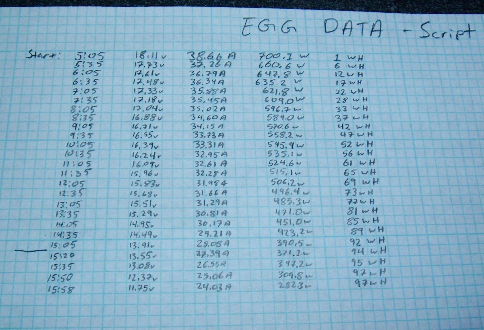 At 20Wh into the pack (out of a claimed 120Wh, and my math says closer to 110Wh), things are sizzling a bit around the edge, the power resistors are still running past 150% rated load, and nothing has started on fire yet. Also, no visible progress on the egg.