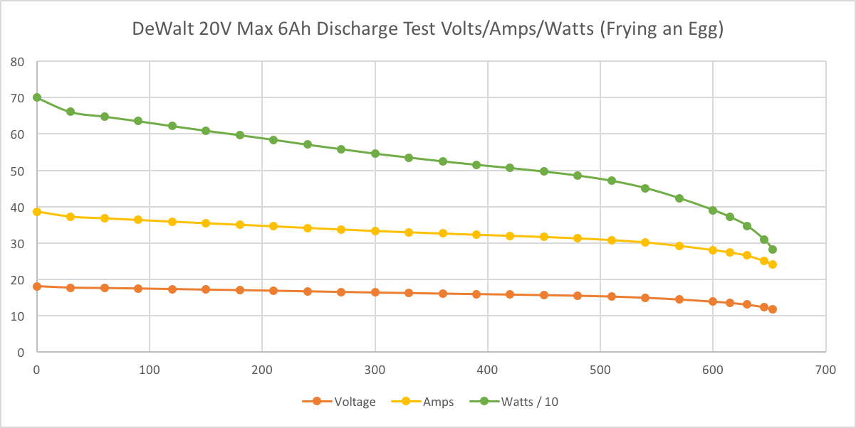 I’m only mildly surprised that this worked without any spectacular failures - this pack contains a lot of energy, though I did expect a slightly less-well fried egg out of the deal. But it also shows that this pack is a beefy monster, and can source a lot of amps for quite a while. No smoke, no drama, just power.
