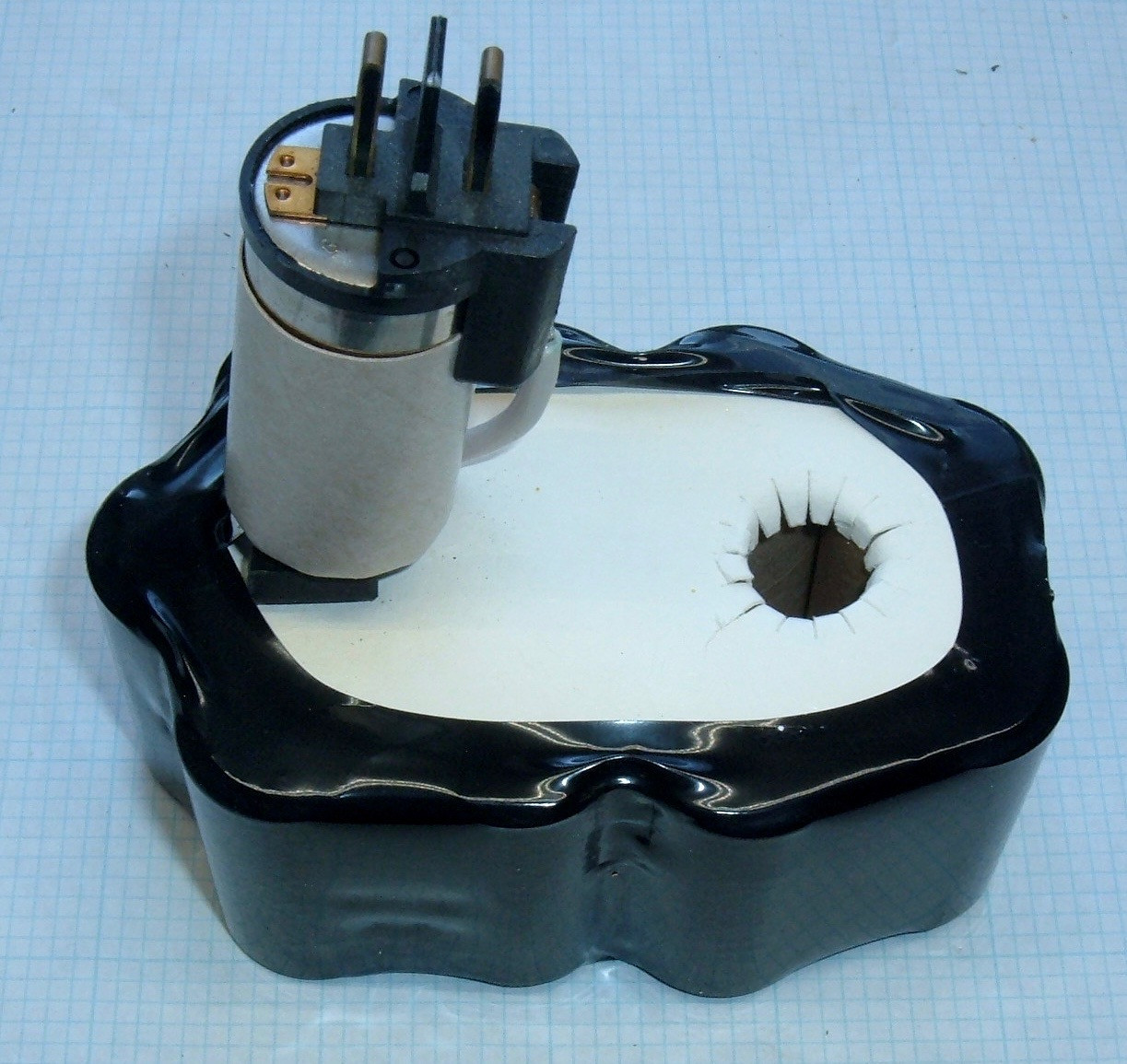 This is a somewhat smaller battery, as might be expected for a lower voltage system. It’s a 774g (1lb, 11.3oz) battery pack that’s almost entirely dead - as are all the ones I have here. Nickel cadmium (NiCd) cells have a high self discharge rate - so sitting for a year or two makes them totally dead.