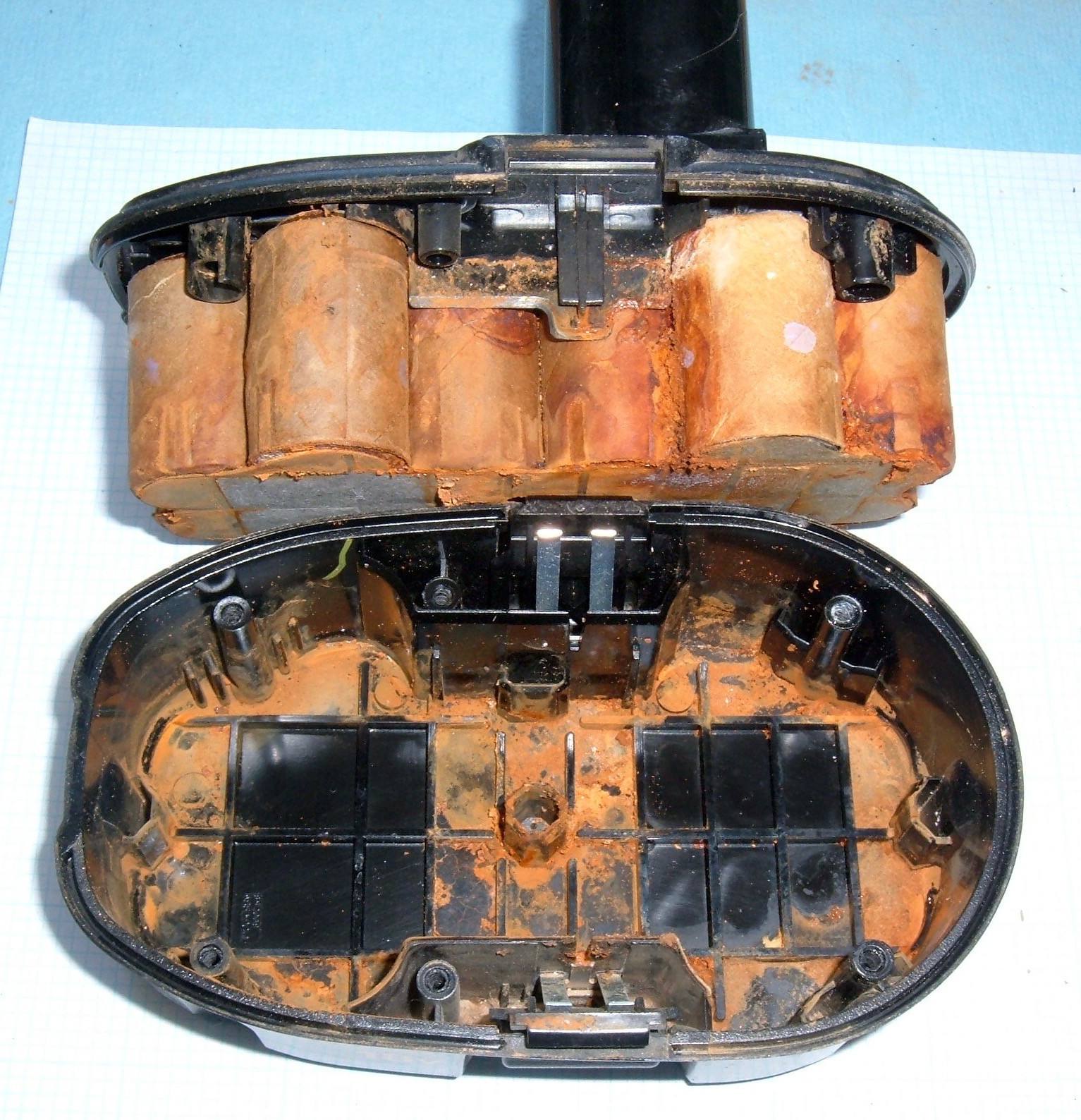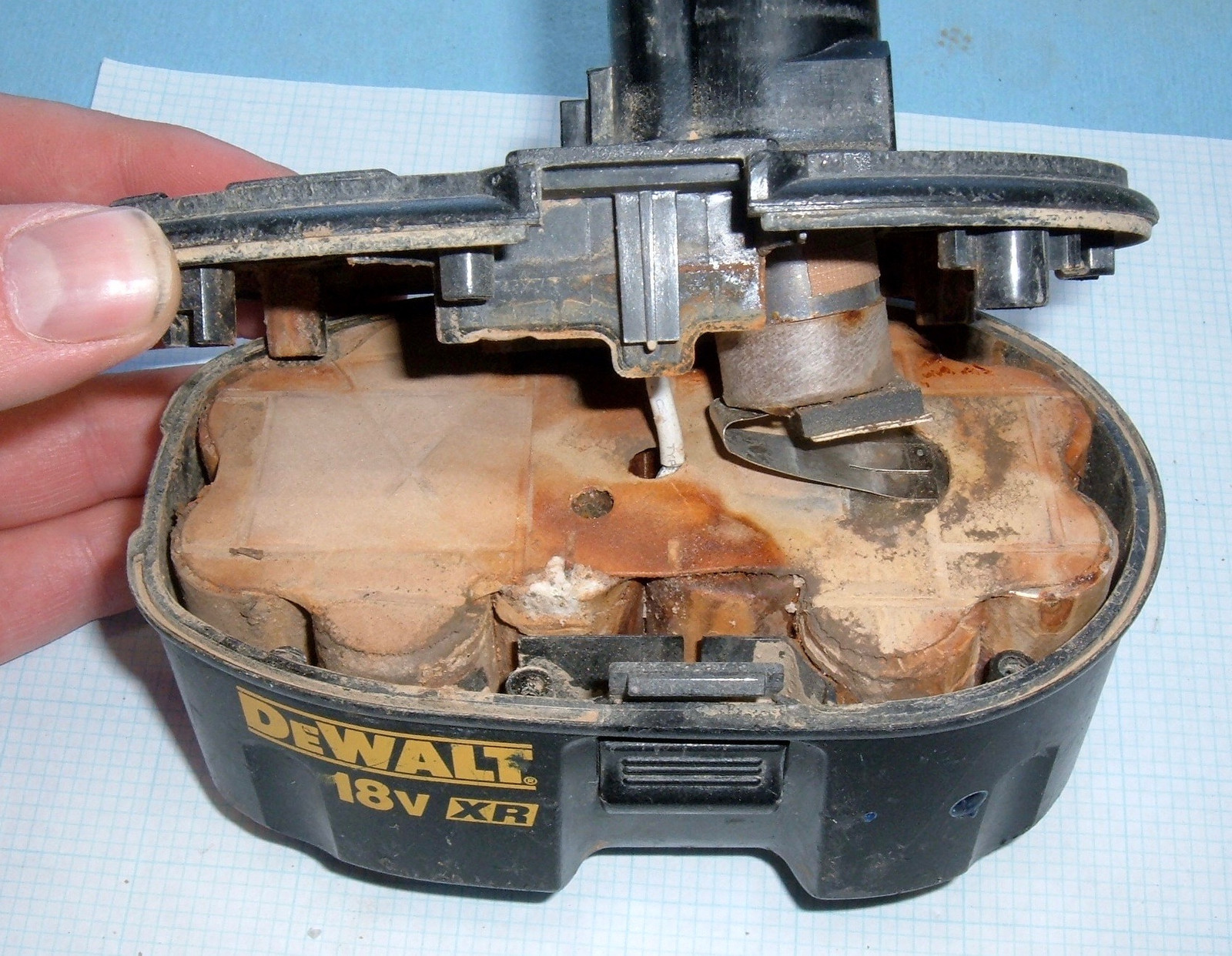 And… ew. This pack seems to be badly rusted out on the inside. I assume it got very wet and was never dried, but it’s toast. Or some cells vented and made a mess. I don’t know, and I’m pretty sure I don’t want to know.