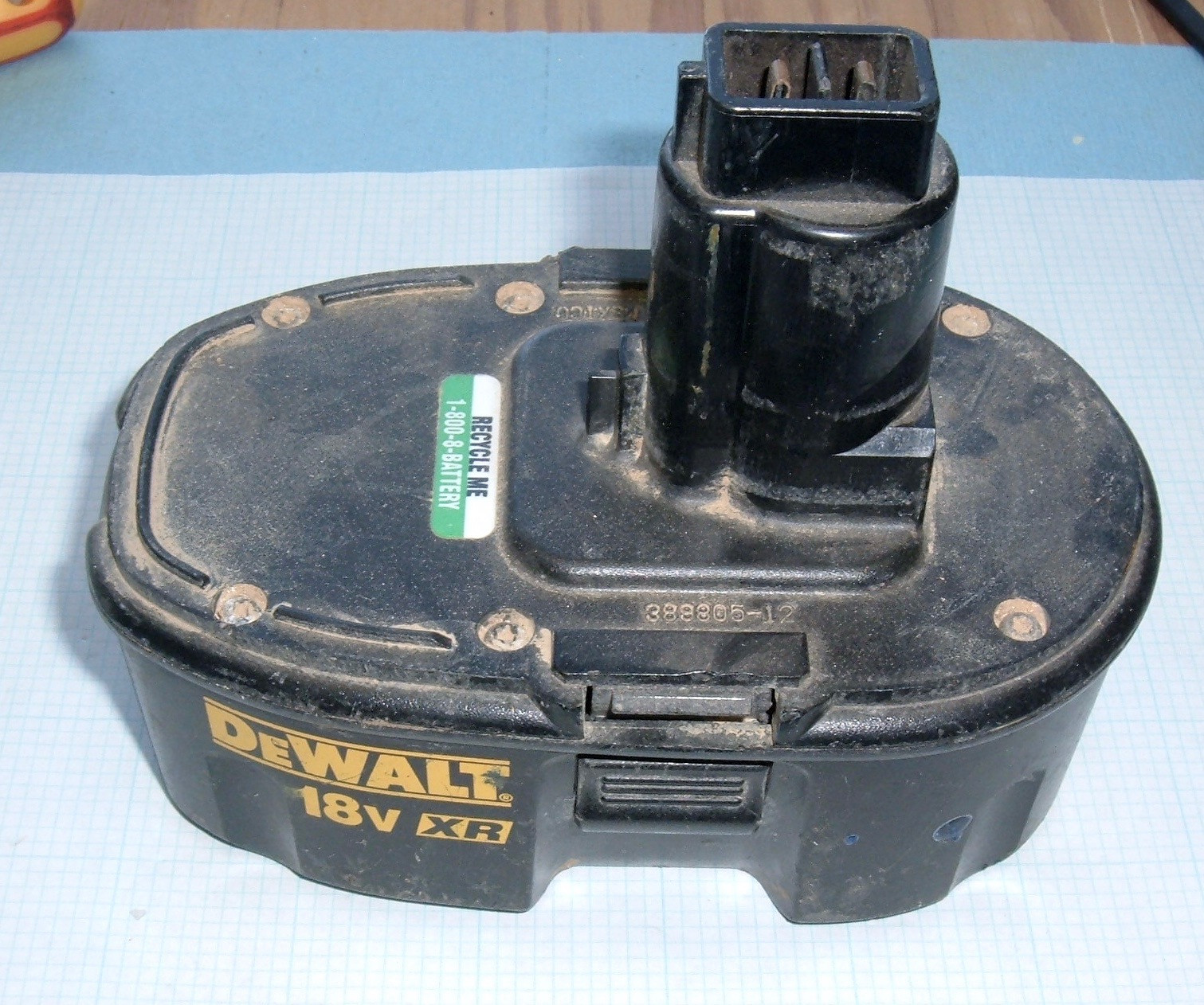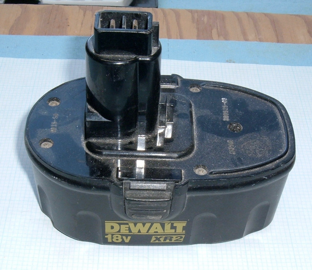 The DeWalt 18V XR is an Extended Runtime (XR) battery that is pretty much the same thing as the previous cells. I have no idea how extended the runtime is, but there are just the two contacts on top, like the previous cells.