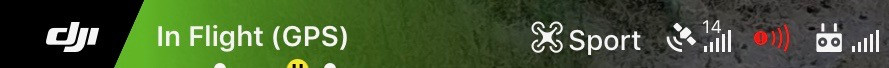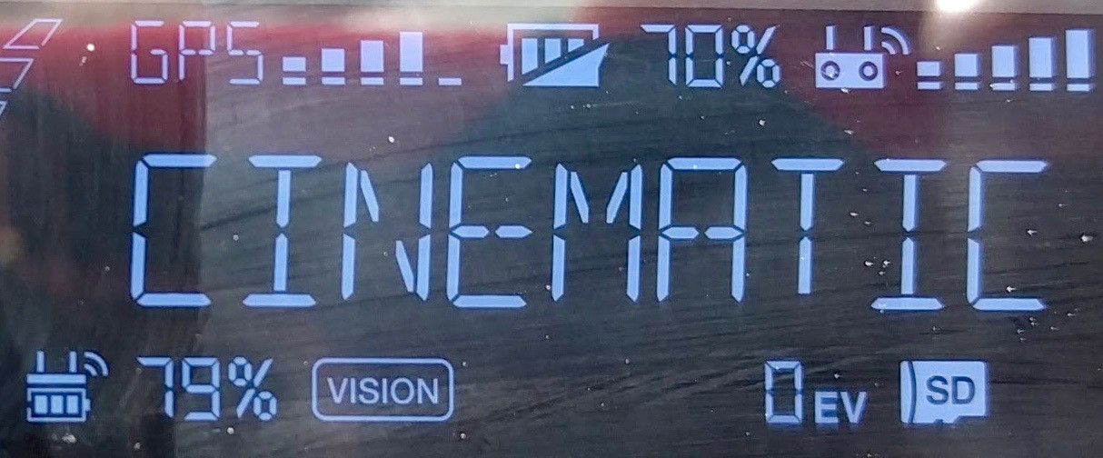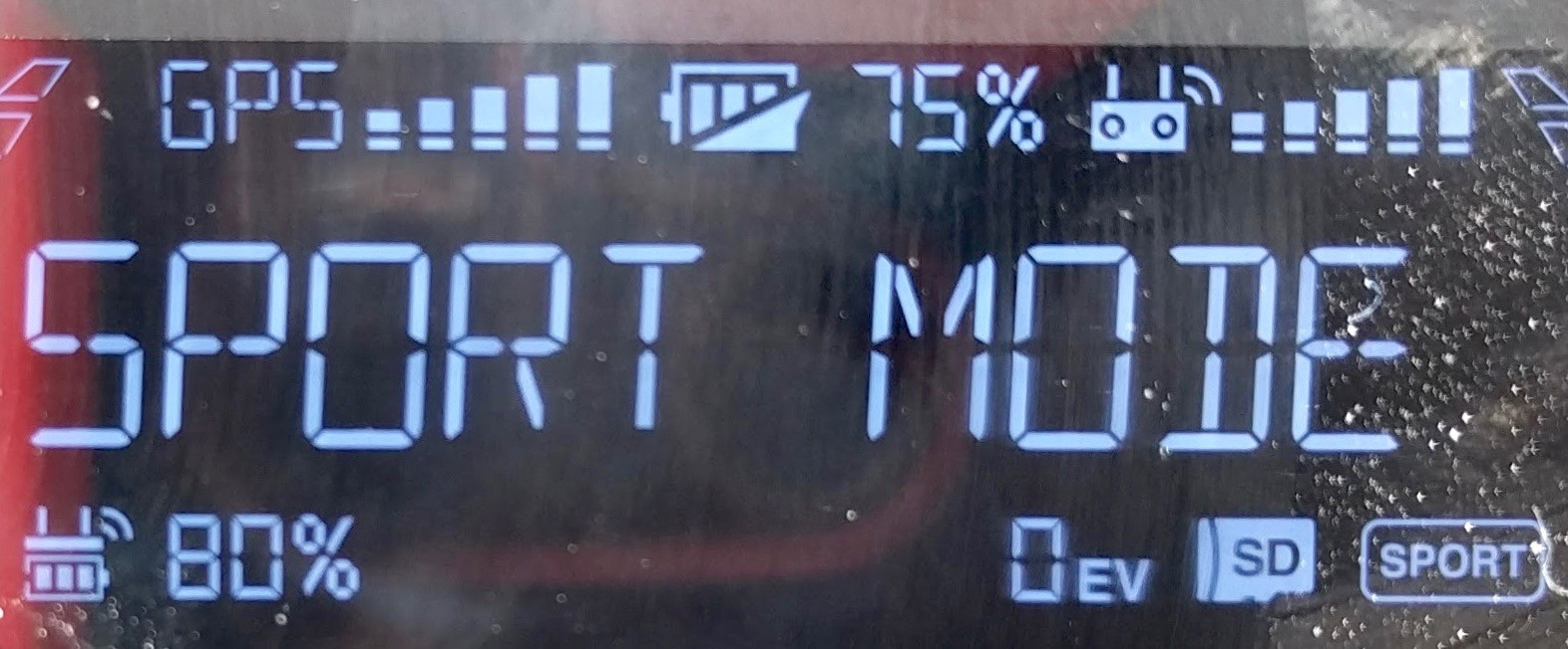 If you look at the lower display, you’ll notice that the “Vision” indicator (normally to the right of the remote battery percent) is gone, and the “Sport” indicator has lit up over in the lower right corner. Again, this is telling you that you don’t have obstacle detection. Fly accordingly!