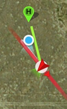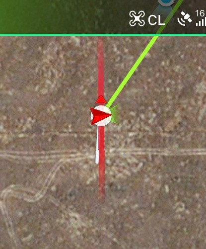 In the map view, you’ll see a red line indicating the locked course. Just past the aircraft position marker, you’ll see an arrow on one end. That’s forward. No matter how the drone is pointing, moving the left stick up will always move you in that direction.