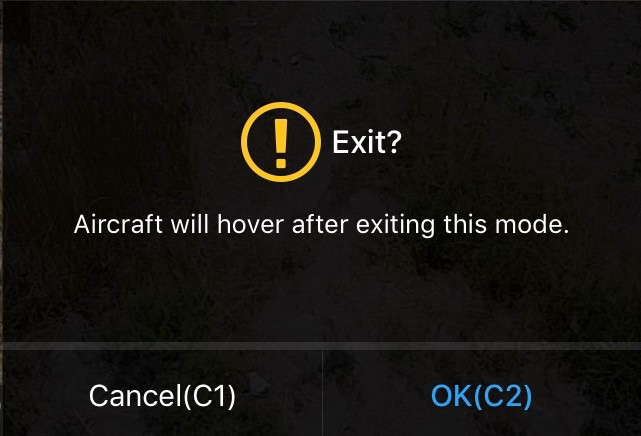 For any of the “Intelligent Flight Modes,” you can exit them in two ways: The red “X” on the left side of your phone/tablet screen, or a long press of the “pause” button on the remote controller. Either way works, though the pause button is a bit easier to find in bright light.