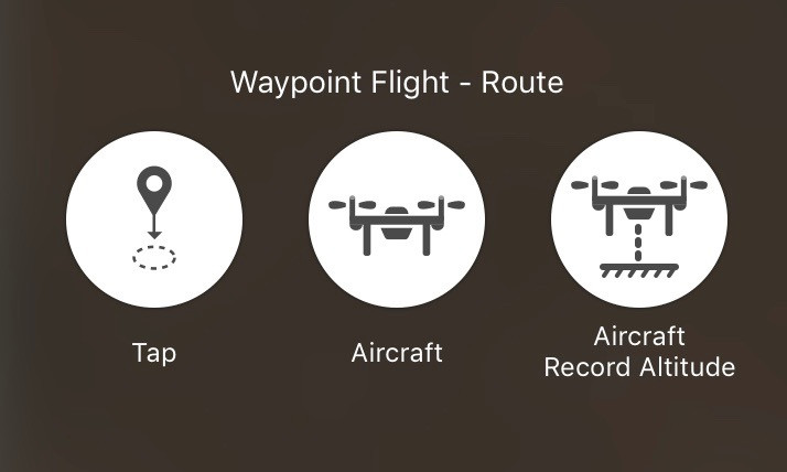 “Tap” lets you create a mission on a map with your fingers, configure the details, and then go fly it. ”Aircraft” is pretty much the same as the stock DJI Go app waypoints program, except you can then edit things and specify actions. And, “Aircraft Record Altitude” will let you specify waypoints that include the altitude - exactly what the DJI Go app does.