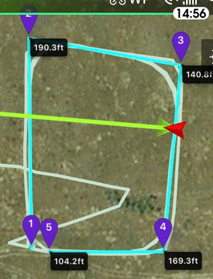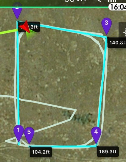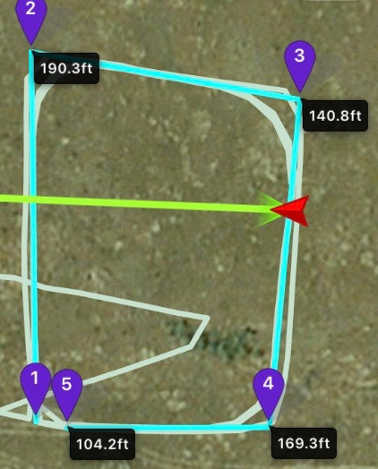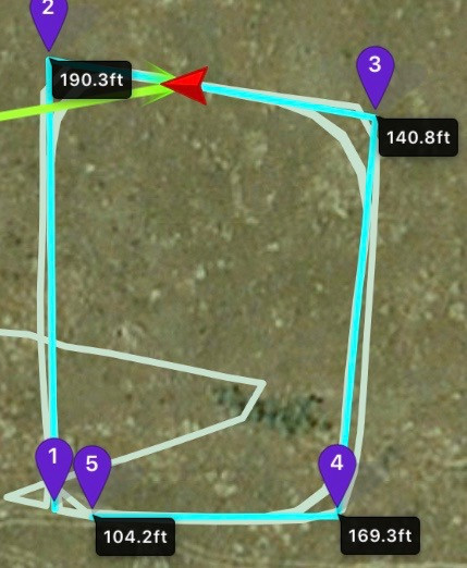 I’ve created a box with some sharper and shallower corners here (to demonstrate corner rounding). Since I’ve recorded my last waypoint, I click “Done.” This moves to the next screen, where I can actually go fly the recorded mission.