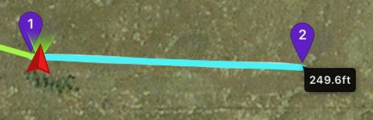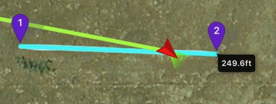 Here’s an example of “Adjustable Heading” in flight for a very simple route. The left waypoint (#1) is facing north, and the right waypoint (#2) is facing south.