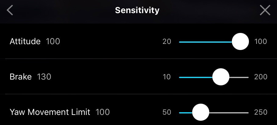 Sensitivity adjusts how rapidly the drone responds to various situations.