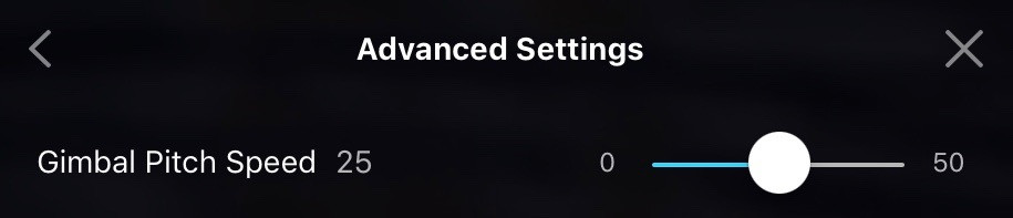 This slider controls how rapidly the Mavic Pro will yaw in Cinematic Mode. Again, the default is all the way down, but if you (for some reason) need faster yaw when filming in Cinematic Mode, turn this up a bit and the drone will turn faster. I don’t see a particular need to play with either of these settings (as the whole point of Cinematic Mode is smooth acceleration, deceleration, and yaw), but they’re around if you need them!