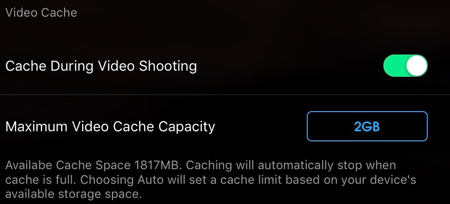 Cache During Video Shooting / Maximum Video Cache Capacity