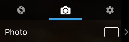 The camera menu is accessed with the “settings” icon to the right of the circular “record” or “take photo” button. The vast majority of the settings and options apply to both still photography and video.