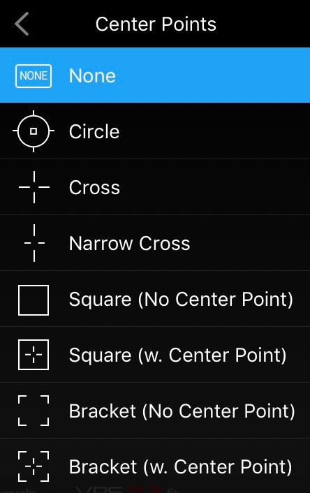 By default, there is no indicator of “center” in the viewfinder. The focus/exposure boxes are often in the center, but you can move them around by tapping. If you’d like a dedicated center icon, you have many options. Use them if you feel so moved! You can also set the color, if you’d like.