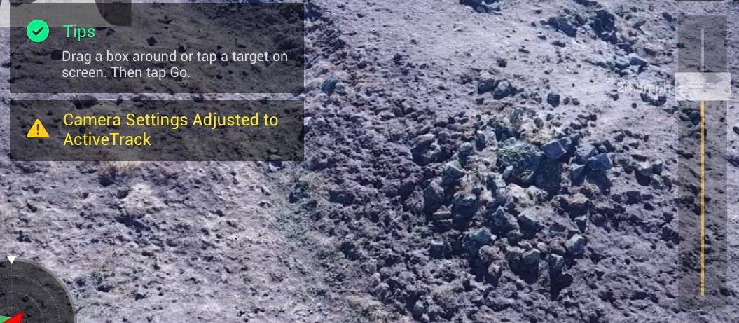 Once you tap the QuickShot icon, you’ll see the following two tips on screen - if it looks like ActiveTrack, that’s because it is! All three of these modes are using ActiveTrack, so if you try to lock onto something that ActiveTrack struggles with (say, a pile of rocks), you’ll get weird results. It’s far better suited to working with a human or vehicle target than random contrasts against the background that change with angle.