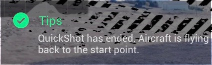 After the shot finishes, you’ll see the popup indicating that the drone is returning to the start point - and, if all goes well, the drone will return in forward flight (with obstacle avoidance working) to the start point.