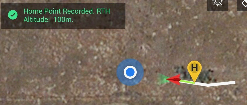 After I’d walked a bit, the drone has followed me, and the home point updates to the drone location while it continues to follow me along.
