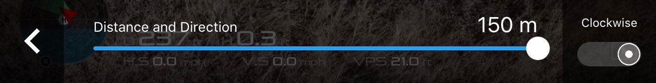 If you tap the Helix icon again, you can select distance (out to 150m, default is again 60m) and pick which way the drone spirals around - clockwise or counterclockwise.