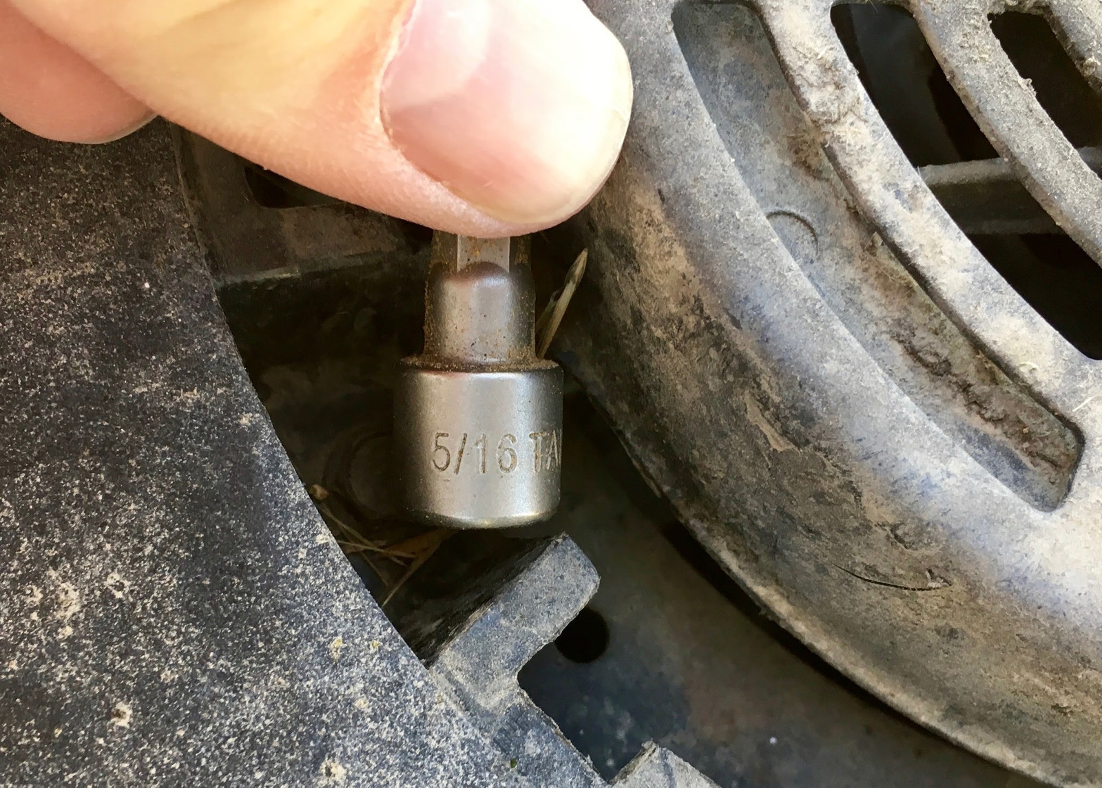 Once you’ve found the three bolts, you’ll need a 5/16” socket of some variety or other. I had this laying around, so grabbed it with a pair of vice grips to make a socket driver. It works, and I couldn’t find a small 1/4” drive socket of the right size - it turns out that owning metric vehicles for years means you don’t have a good English socket collection. At least it’s not Whitworth.
