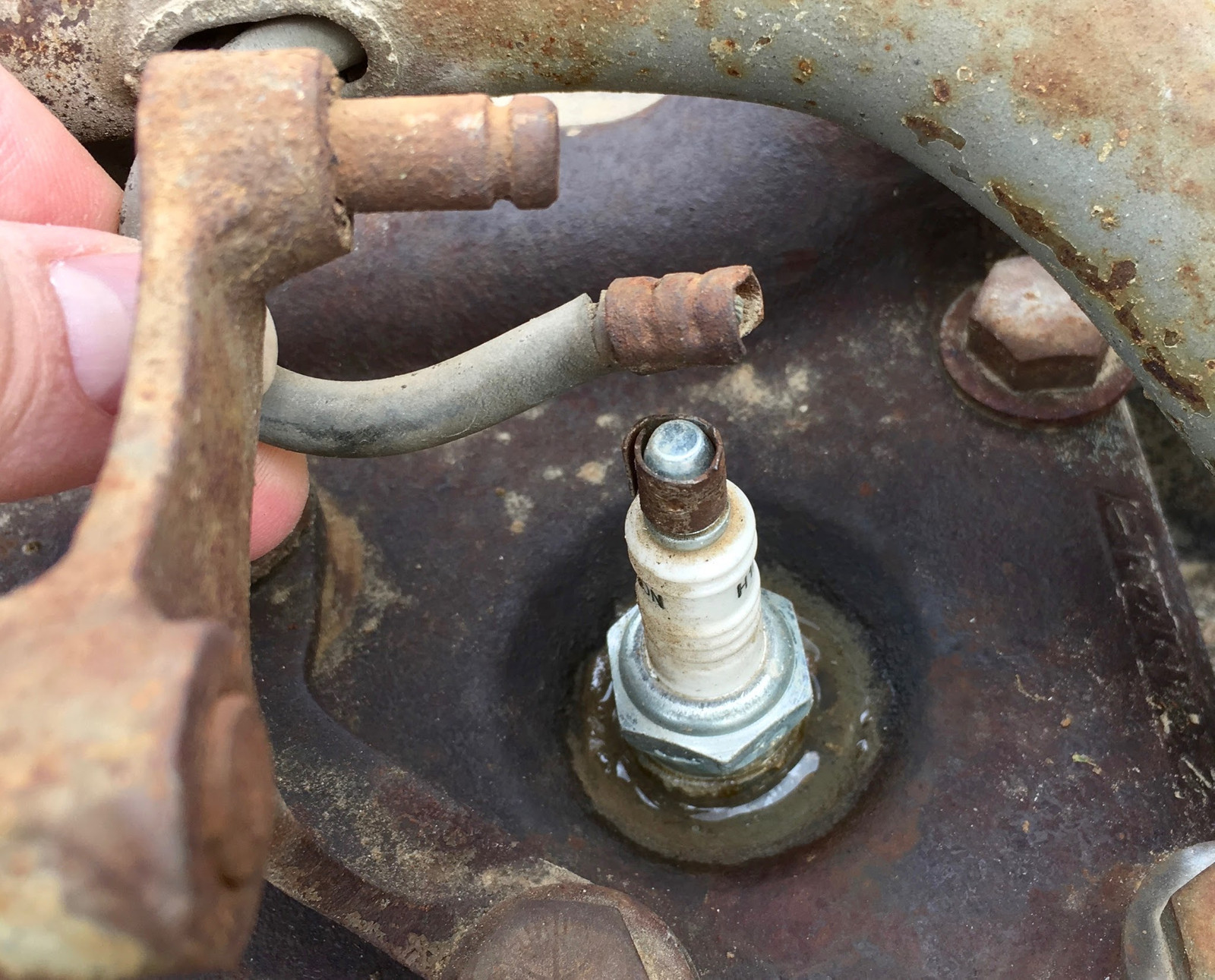 When you’re done with all that, do it a few more times. You should have four brand new plug wires all nicely routed to the distributor through the electrical tube! In addition to having brand new plug wires, the new wires have proper boots on the plug side as well. With the old wires, the tractor refused to start when wet, and I’m certain that wet spark plugs shorting out the current path weren’t helping. This should keep things nice and sealed up. Of course, make sure you put spark plug grease on these ends as well to keep corrosion away.