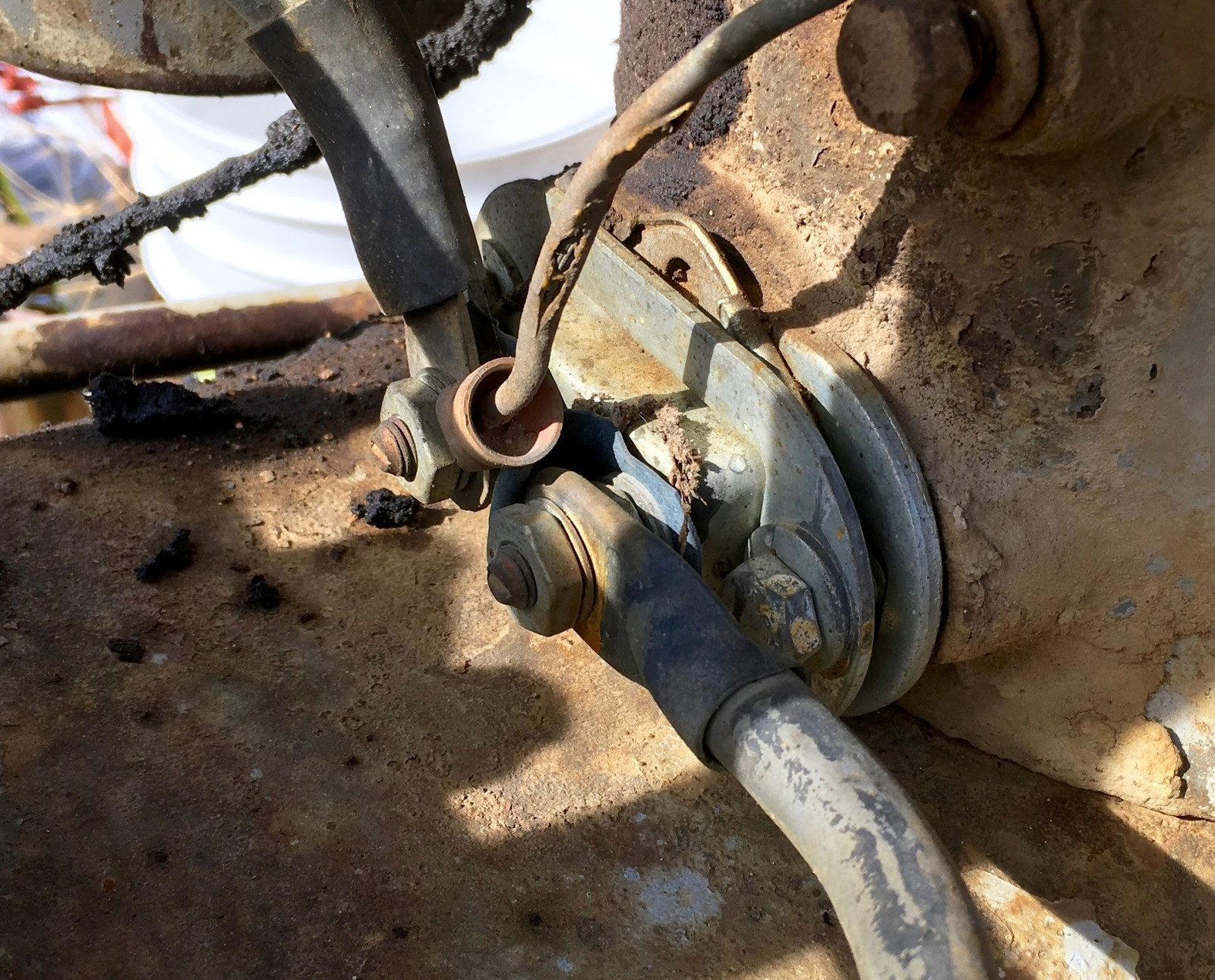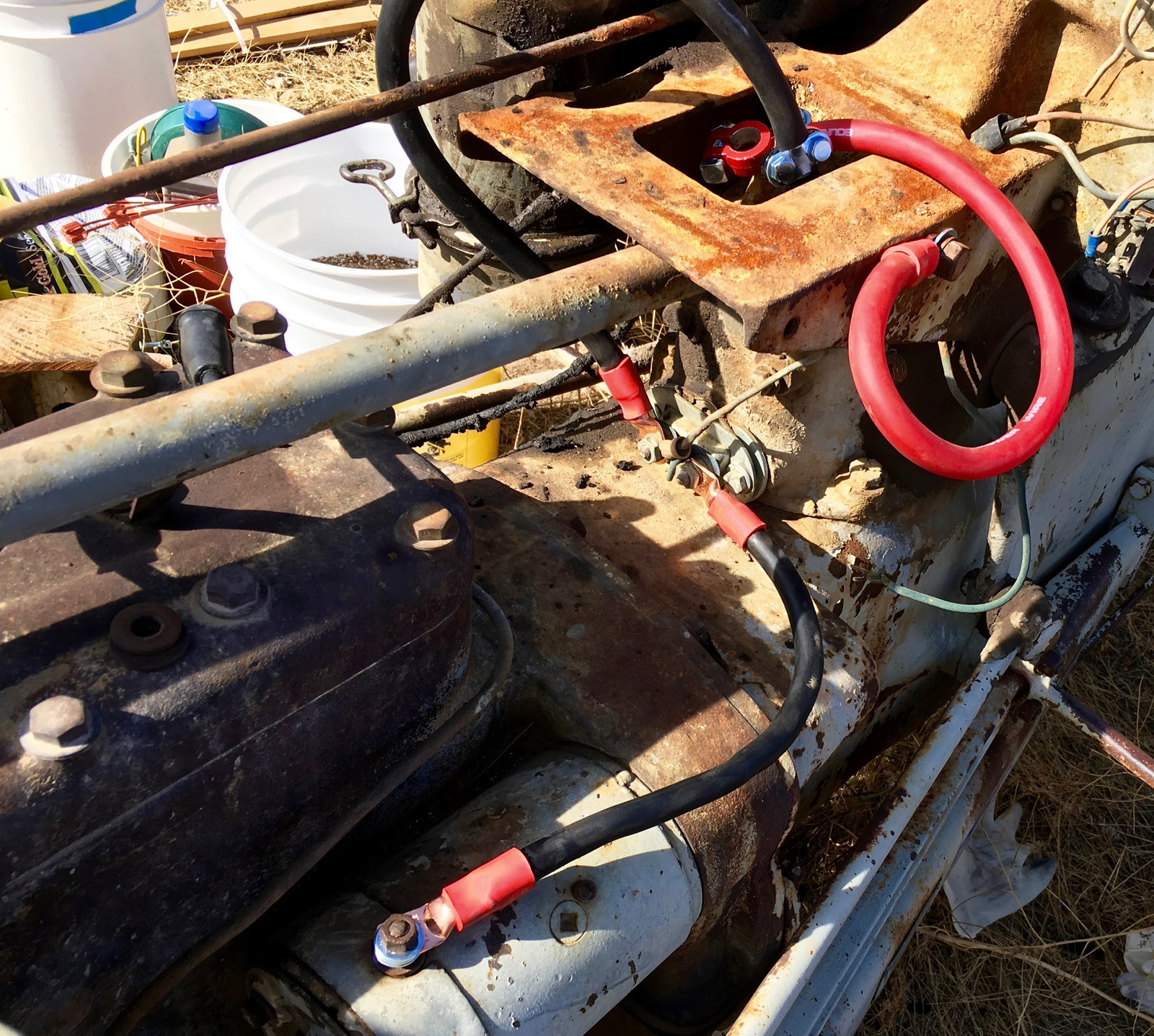 Unlike modern vehicles, I’ve got a 6V positive ground system on this tractor. It works if it’s in good shape, but it’s less tolerant of bad connections in the system (everything is twice the amperage of a 12V system, which means twice the voltage drop over a bad connection, and there’s less voltage to start with). The starter is the only high current draw on the tractor, but it draws an awful lot of current (well over 100A, especially with a cold motor). The more resistance in the system, the less power makes it to the starter to spin the motor.