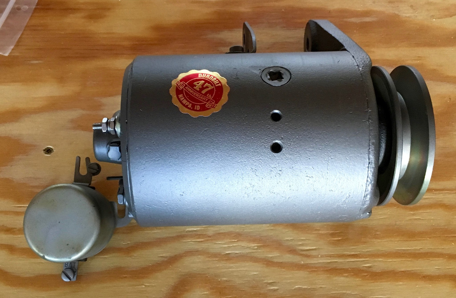 After some work at the local generator rebuild shop (actually, about $300, between the generator rebuild, new pulley, and a new battery), I’ve got a nicely rebuilt and painted generator. The old pulley was the wrong size (and wrong threads - it didn’t actually fit and was held on by a set screw), so I have a proper unit now. They also had to repair some internal stuff (the guy was really busy when I picked it up so I couldn’t ask exactly what), and it got cleaned and painted. They tested the cutout, and the battery I brought in was quite old and didn’t hold a good charge, so I got a new one of those as well. They cleaned up the cutout relay too.