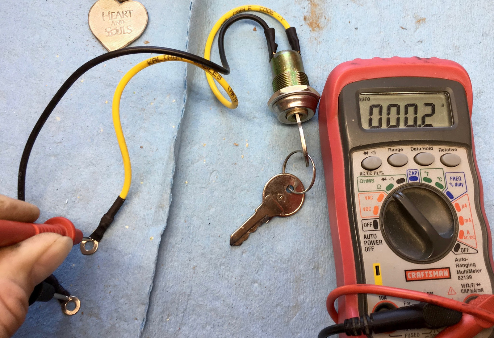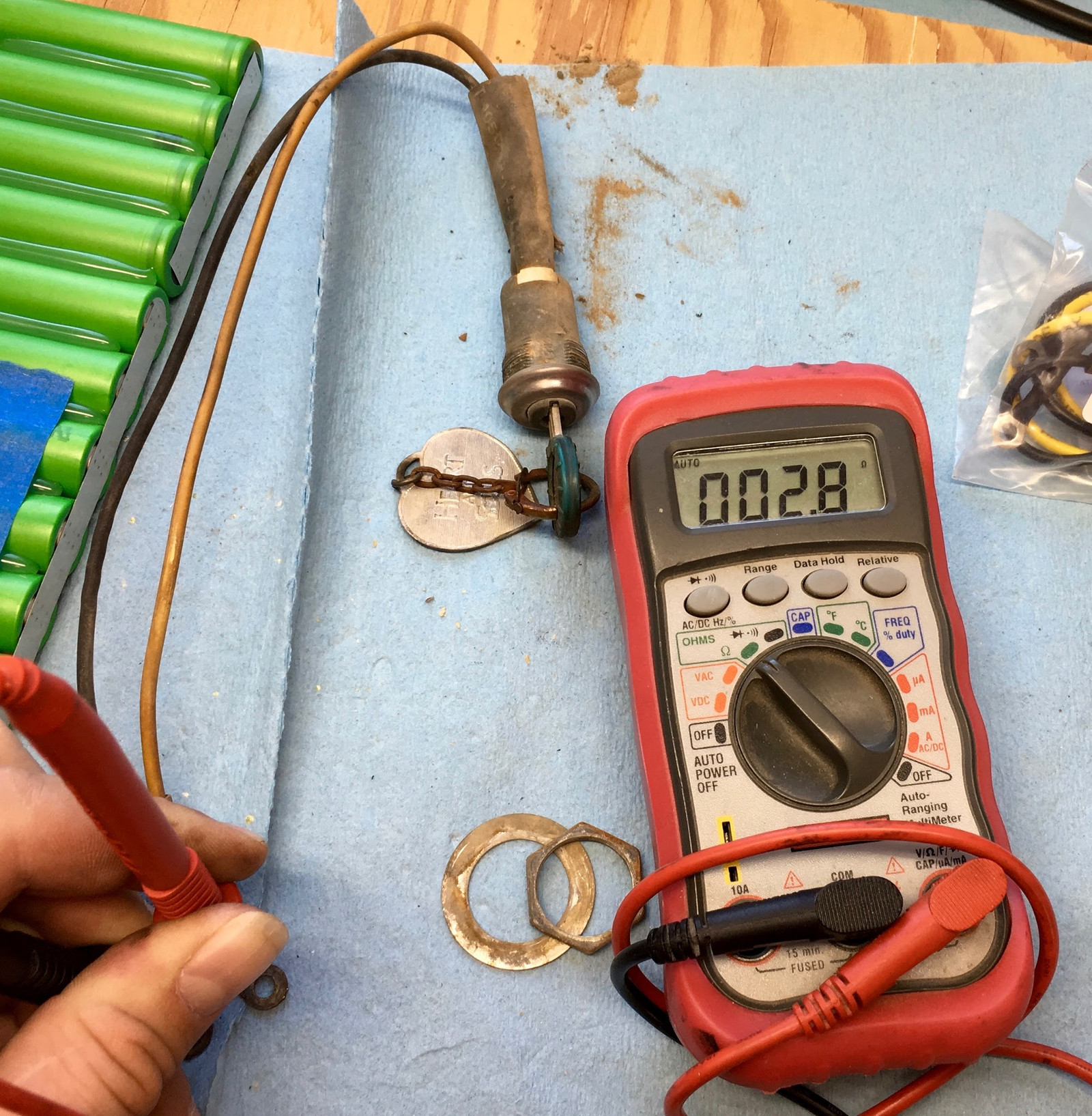 The new switch? 0.2Ω. Only an order of magnitude better. The high resistance here means that the ignition coil isn’t receiving the full intended voltage, which impacts spark strength (and that, in turn, impacts cold weather starting).