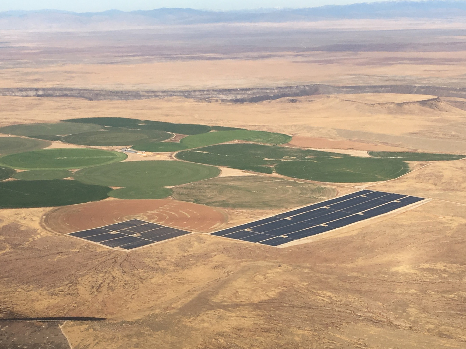 But, here’s the thing: If you already need the batteries to store power, solar and wind can be seriously cheap power. $0.02-$0.04/kWh cheap (normally seen as $20/MWh for utility size installs). The picture below is a local 20MW install in the $0.03/kWh price range - there’s not much else out that way, but it’s near some high voltage transmission lines (you don’t want to know how much power the well pumps for those irrigation sprayers take).