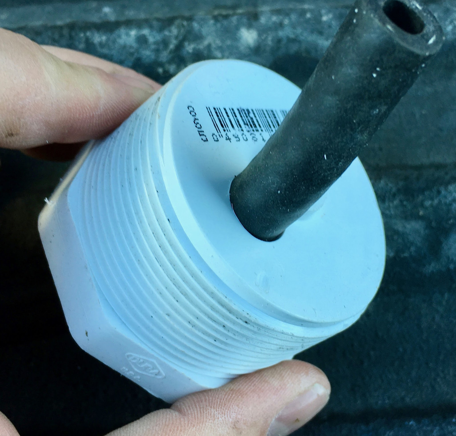 I mentioned earlier that the opening in my fuel tank shares threads with normal PVC pipe - so my tank cap is a PVC pipe plug. PVC is generally gasoline resistant, and this cap won’t be immersed in gasoline (normally) - it will only see vapors.